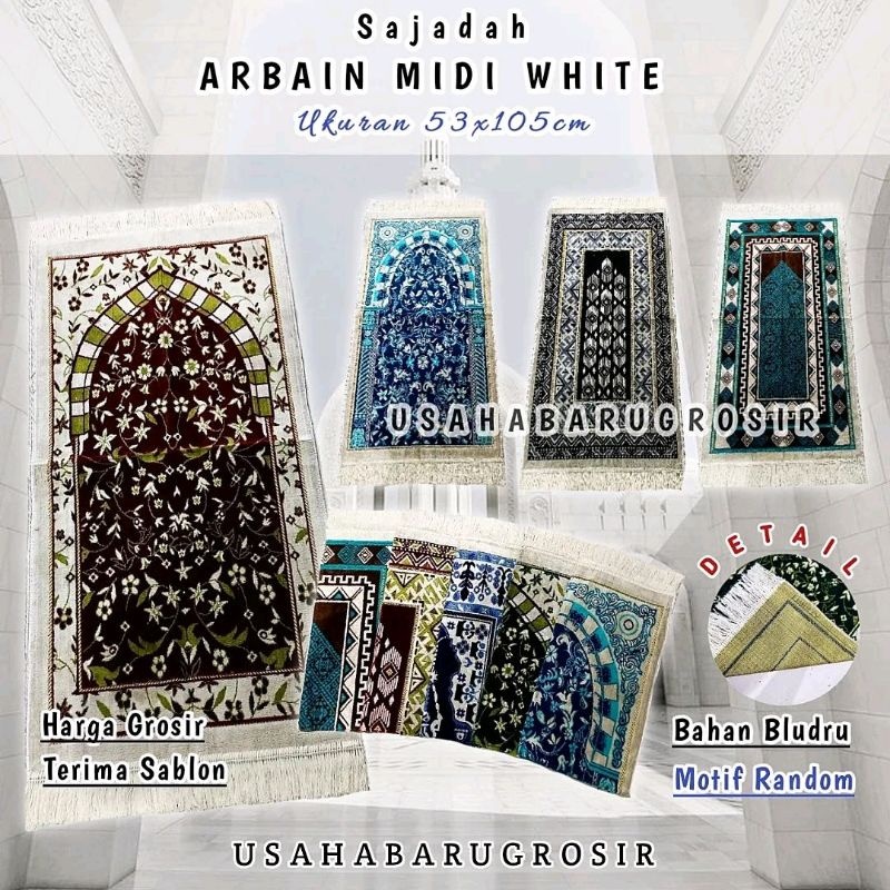 GROSIRAN Sajadah Turki Arbain Cream Premium Isi 10 Pcs Ukuran Midi 55 x 105 CM