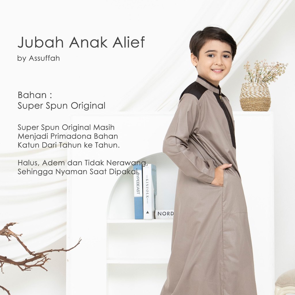 Jubah Anak Laki Laki 9 - 16 Tahun Lengan Panjang Resleting Depan Alief Series