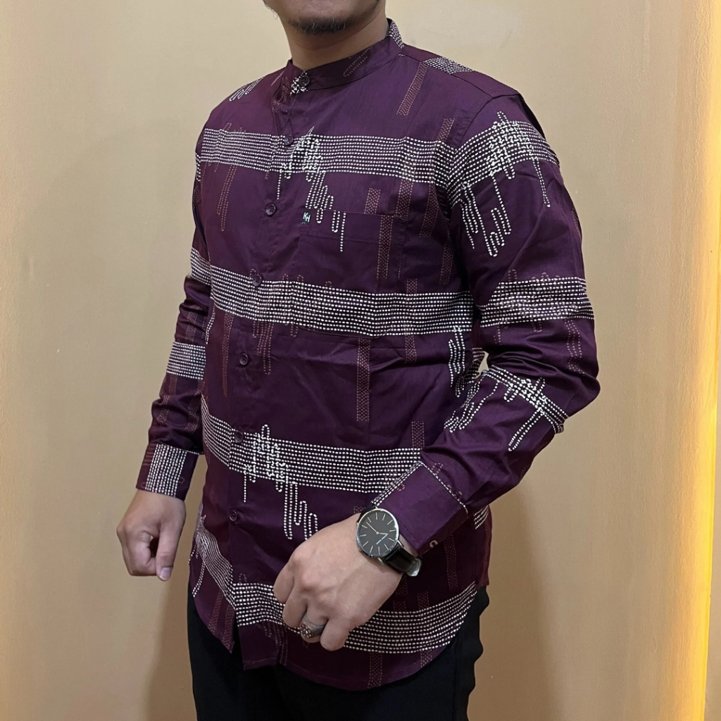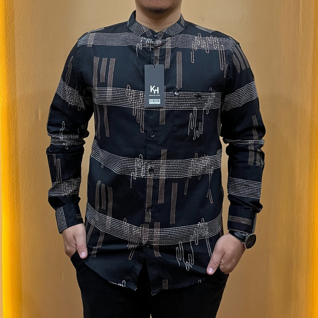 Kemeja Pria Dewasa Lengan Panjang Kerah Sanghai Motif Grafis slimfit Premium