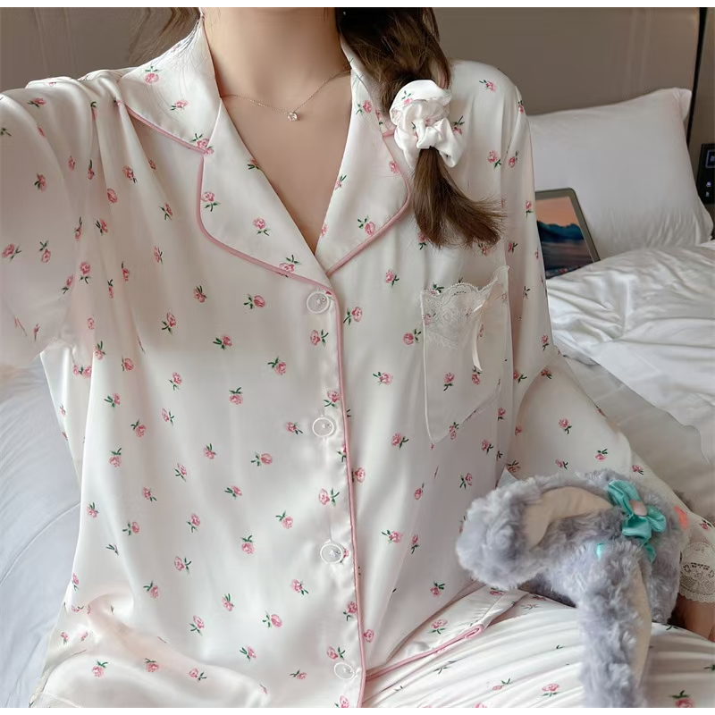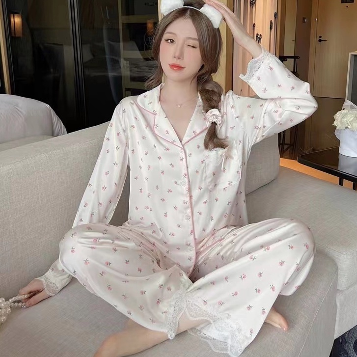2025 Versi Korea Baru dari bunga kecil Long -sleeved Long Celana Piyama Manis/Bisa Mengenakan Pakaian Rumah