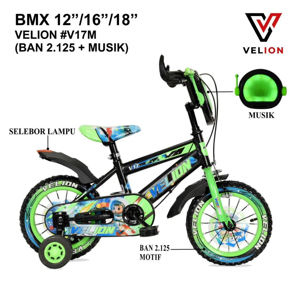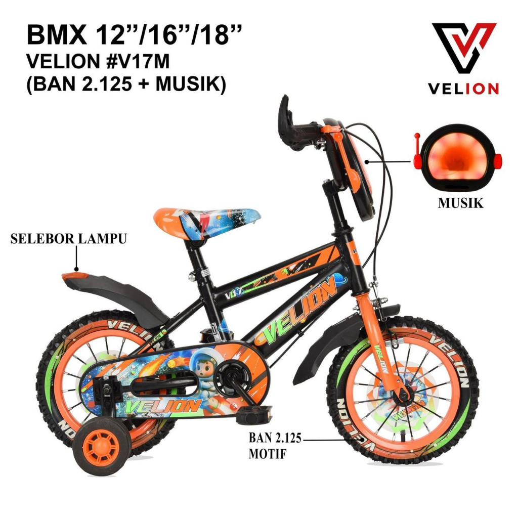 SEPEDA ANAK Laki BMX VELION #V17M Ban 2.125 + Musik #V15 - UKURAN 12" / 16" / 18" INCH ORIGINAL - SUPER MURAH