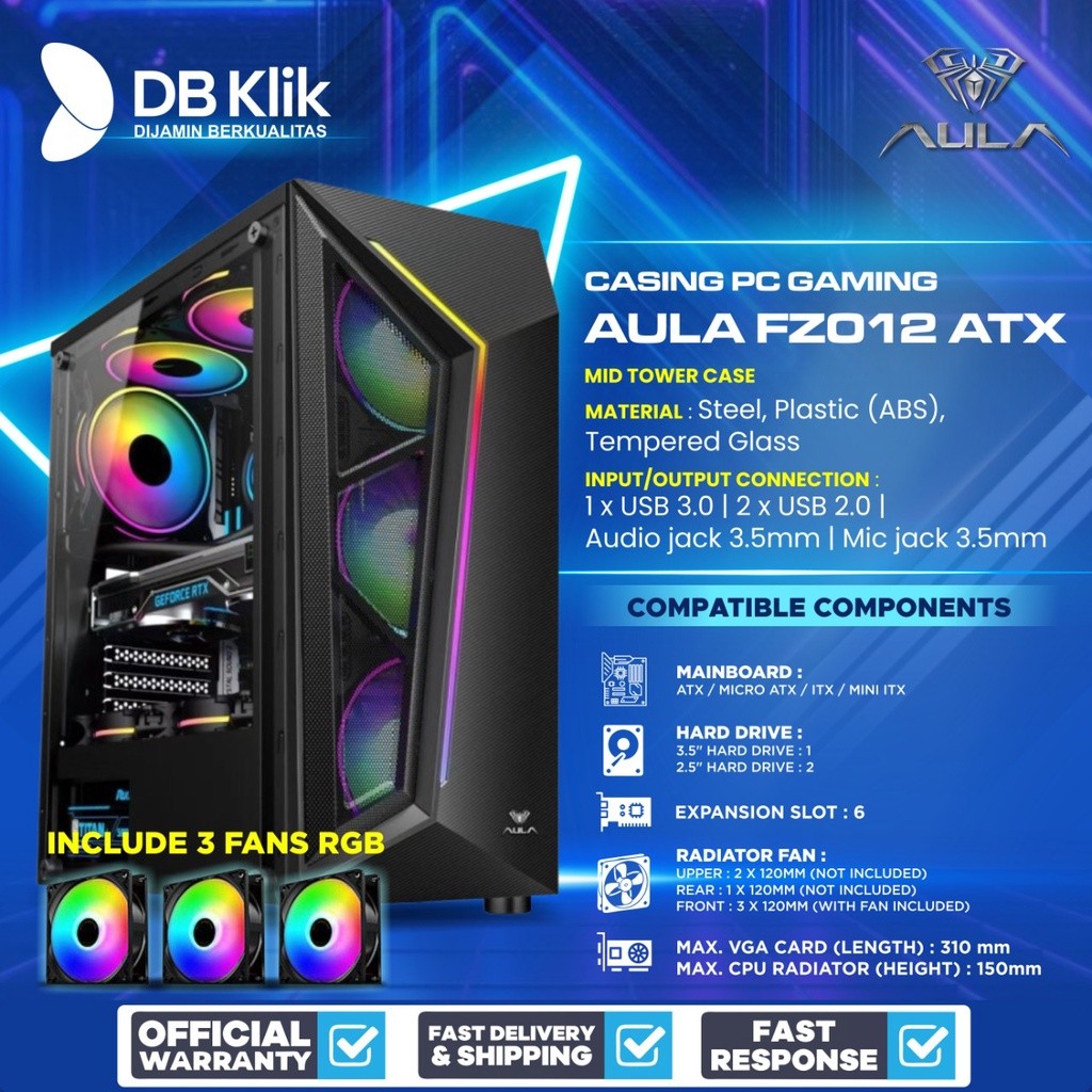 Aula Casing Pc Gaming Fz012 Atx Include 3 Fan Rgb - Casing Fz 012