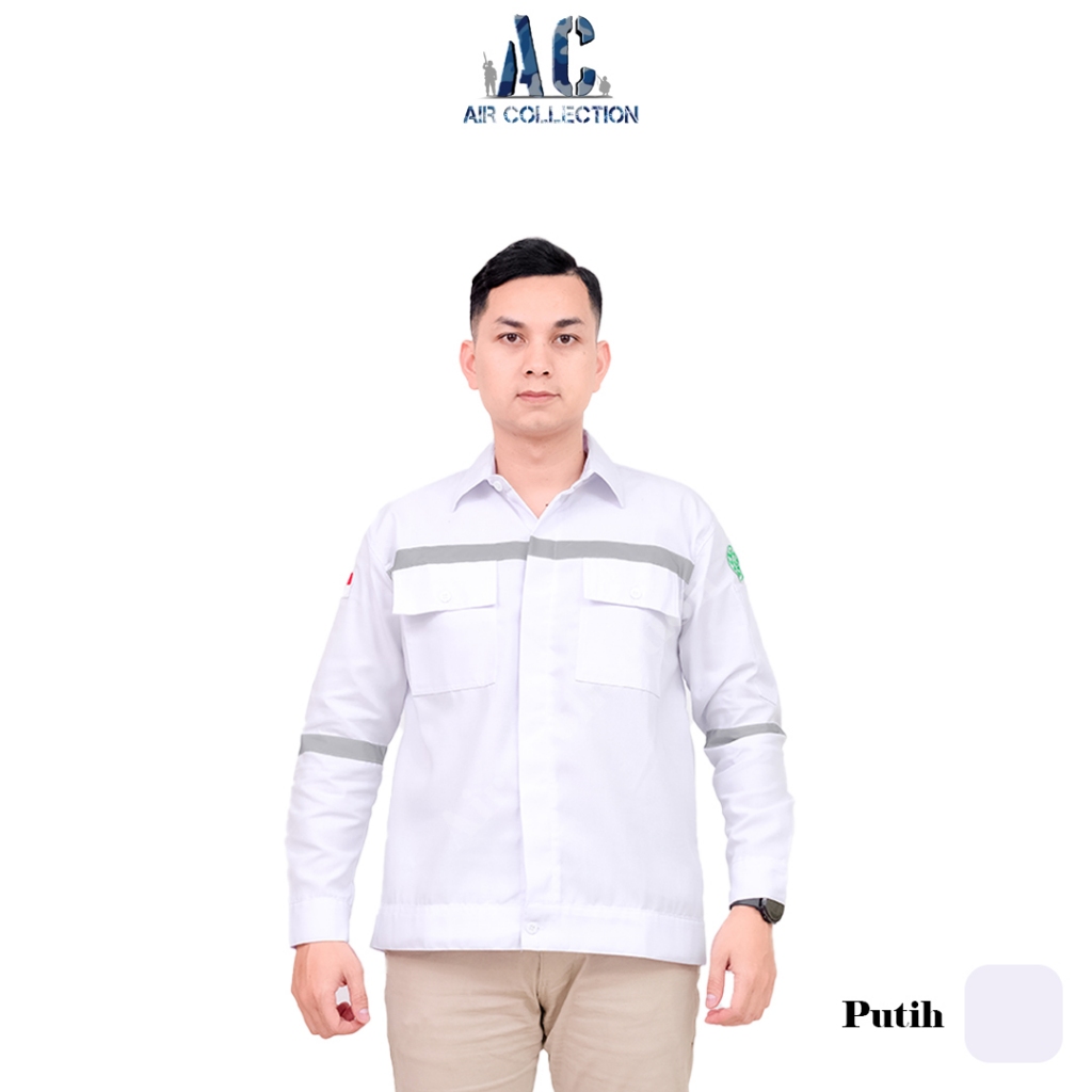 Baju safety lengan panjang seragam kerja proyek kemeja safety premium