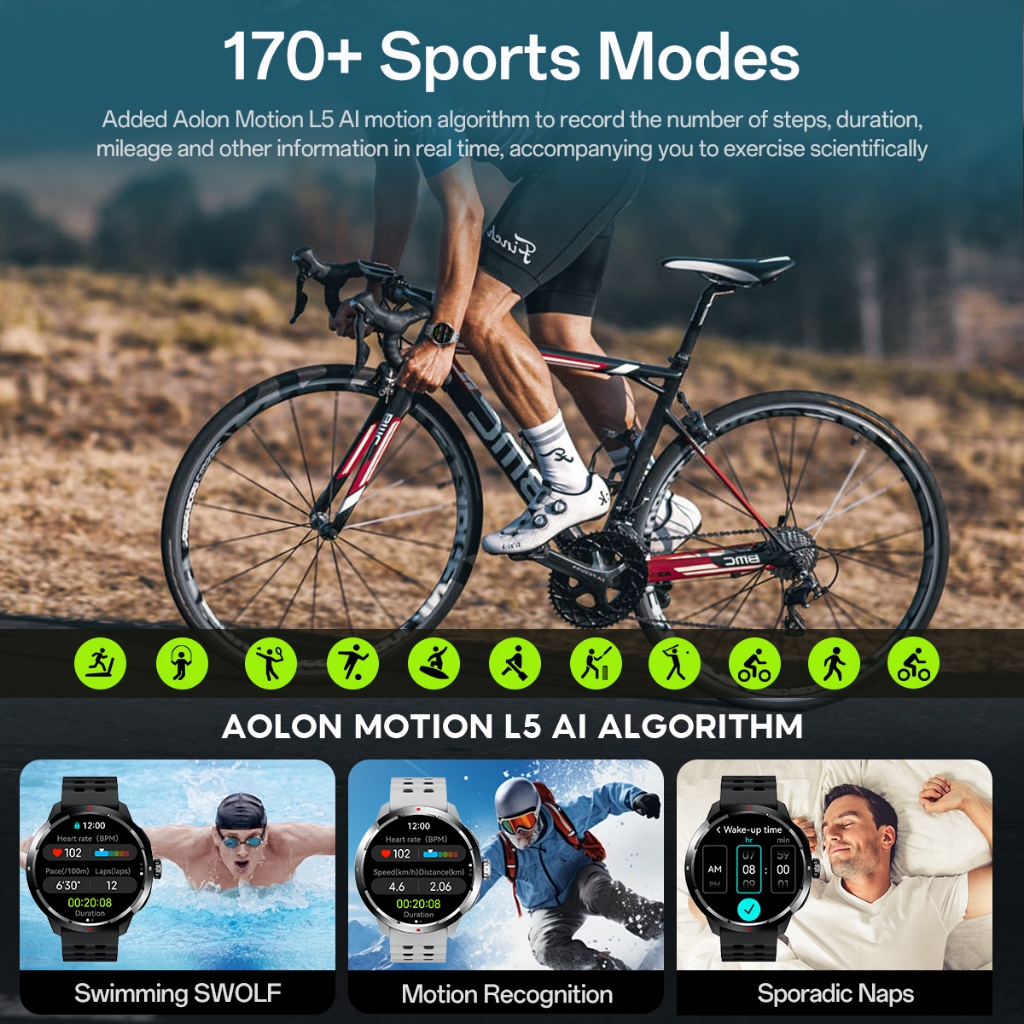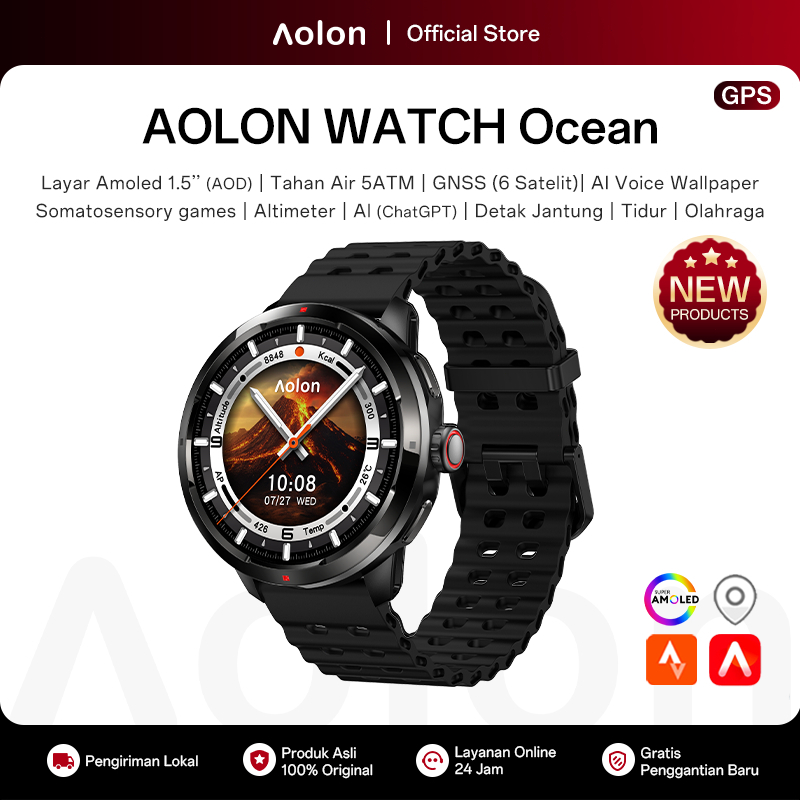 [New Gps] Aolon Ocean Smartwatch Gps Layer 1.5''Amoled Tahan Air 5Atm Ai Voice Wallpaper Chatgpt Somatosensory Games Swi