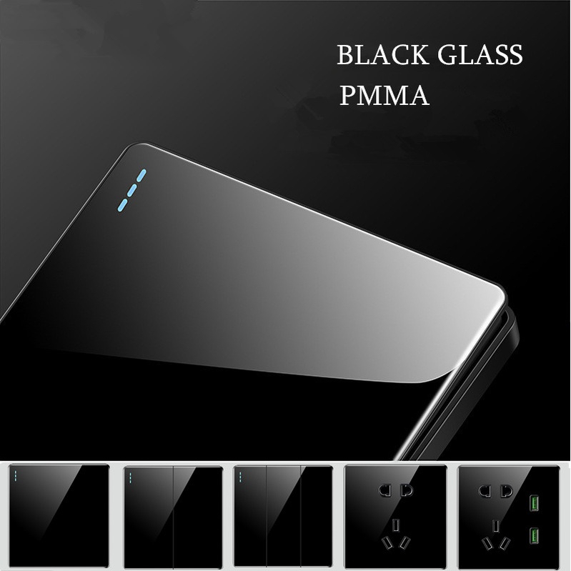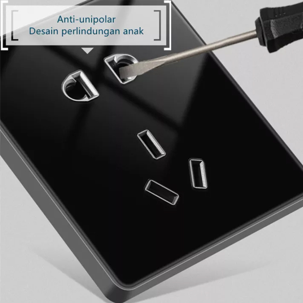 Soket Saklar Dinding Shiny Black Premium, Hitam Mengkilat 1/2/3/4 Gang 1 Arah, Stop Kontak/Usb