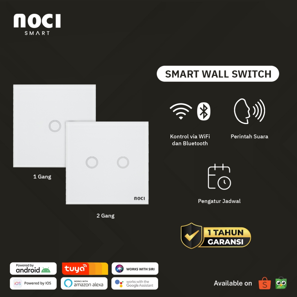 Noci Smart Wall Switch 1 Gang / 2 Gang - Saklar Lampu Touch Wireless Wifi + Bluetooth