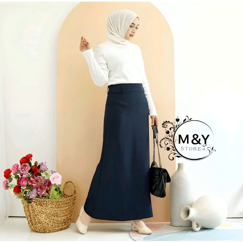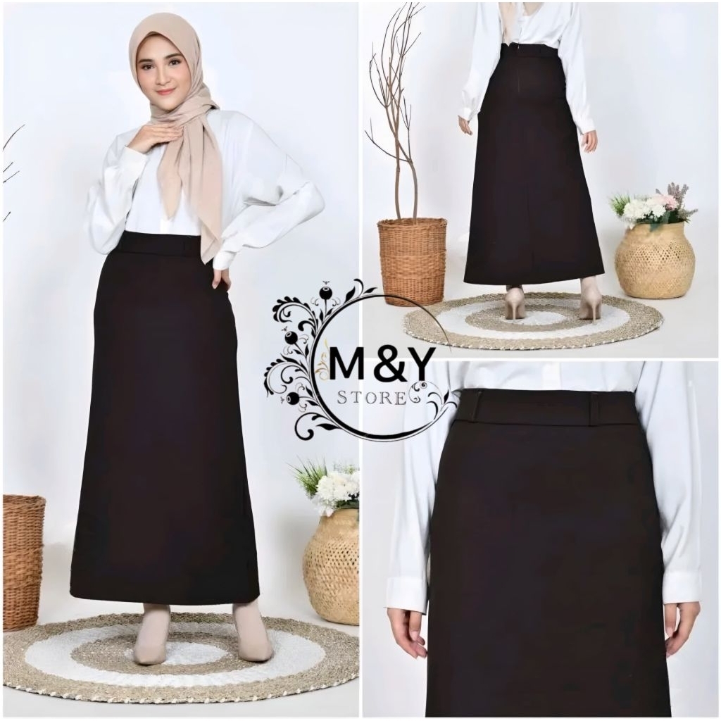 Rok Kerja A-Line Wanita Bahan Wol S-5XL