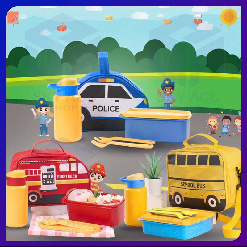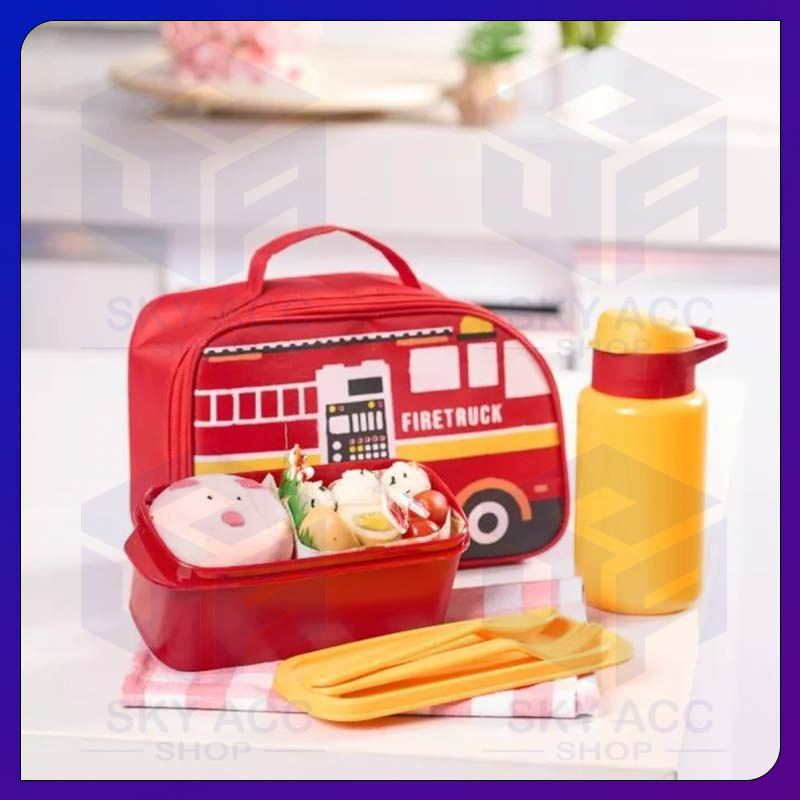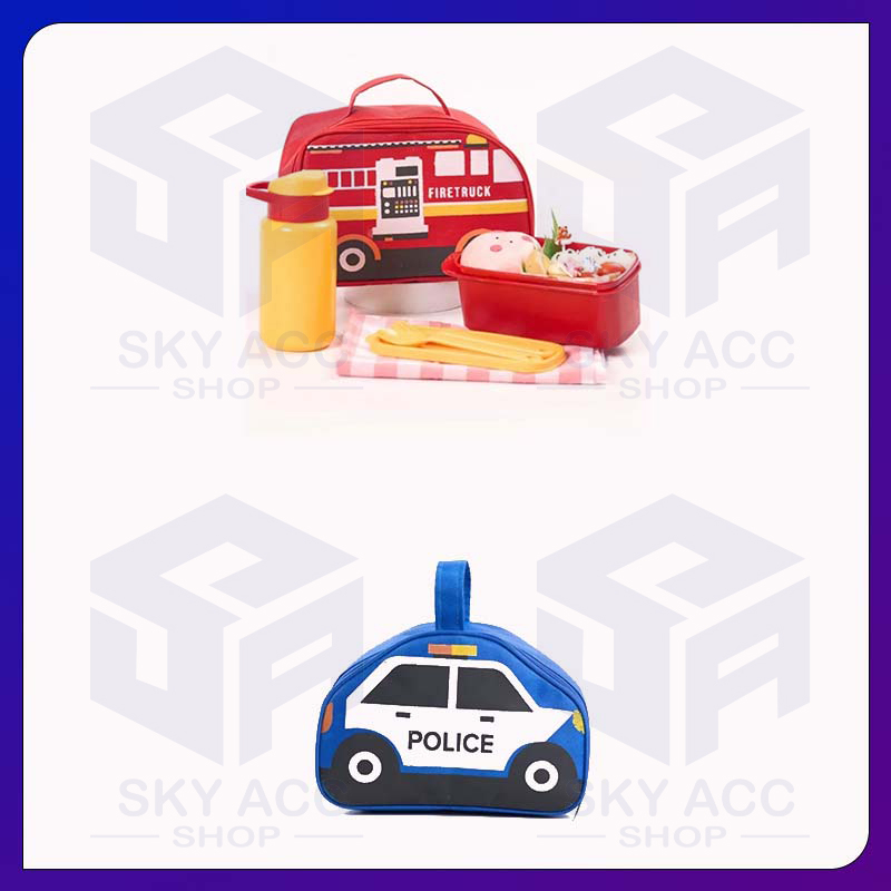 Tas Bekal Anak Car Series Lunchbox Botol Free Sendok Garpu Set |Tas Bekal Anak Motif Mobil | Car Series Lunch Bag Set |L