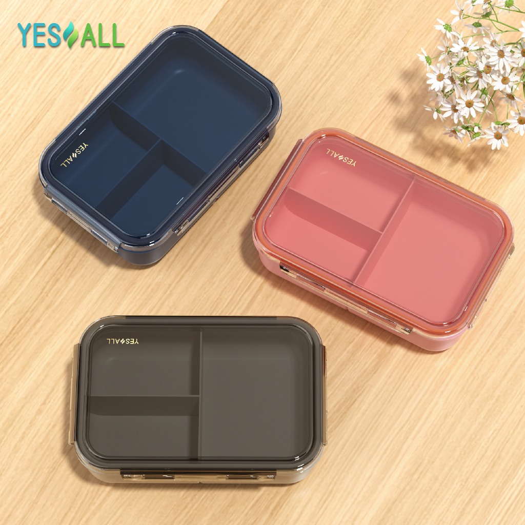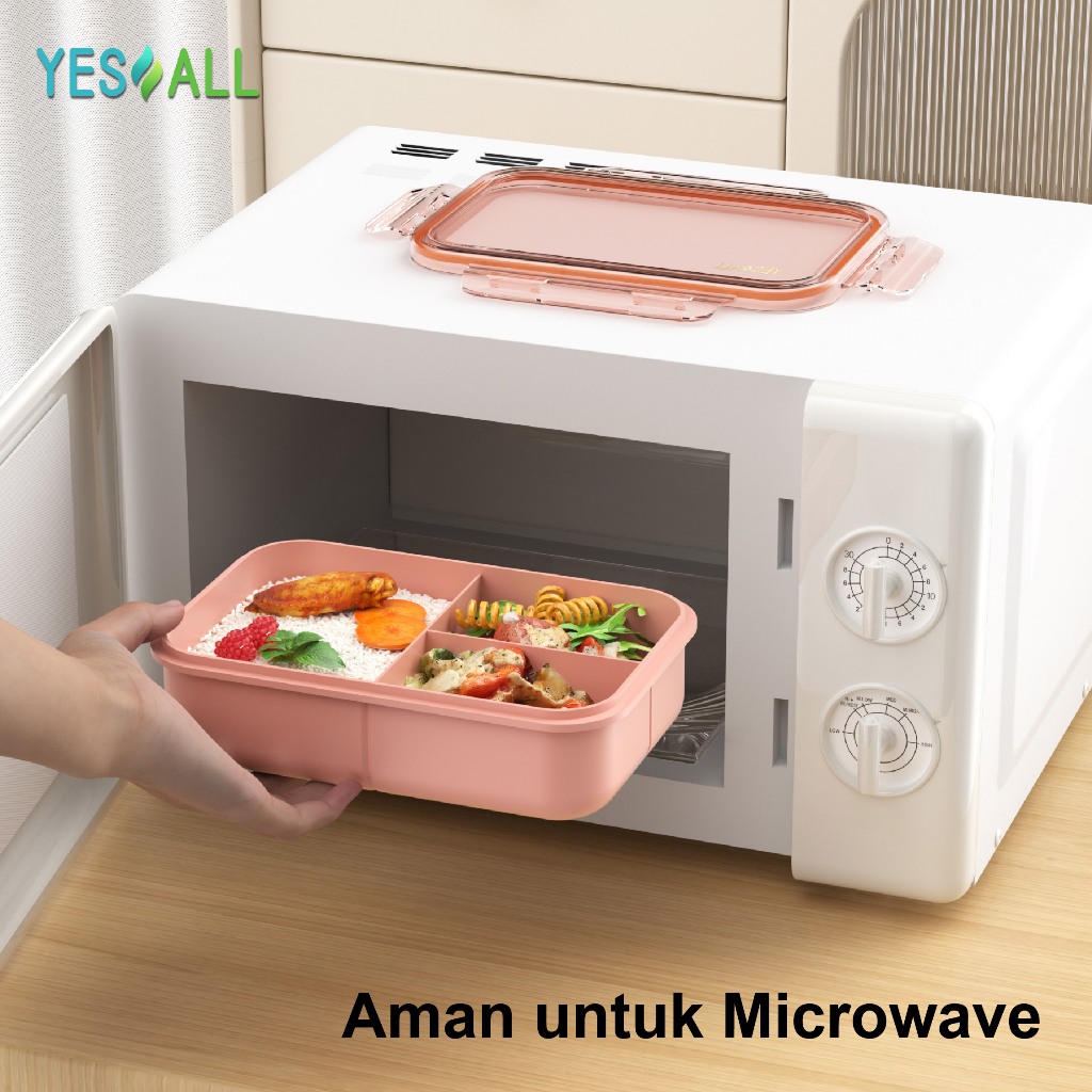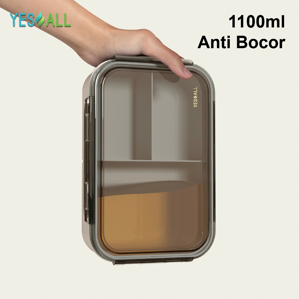 Yesall Lunch Box 1100Ml Anti Tumpah - Kotak Makan 3 Sekat Dengan Sendok & Wadah Saus | Tempat Bekal Anak Sekolah & Kanto
