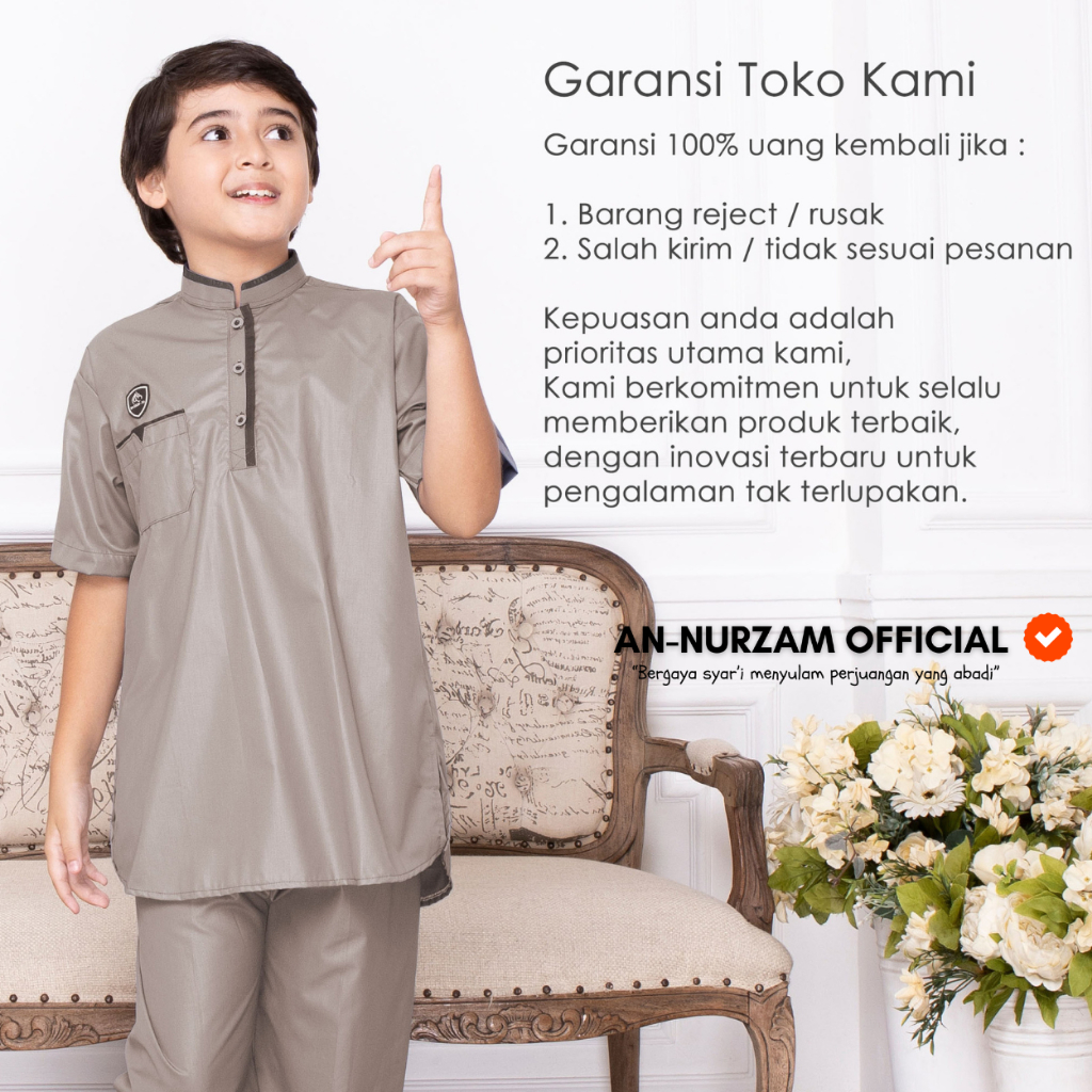 Setelan Koko Anak Tangan Pendek Polet 9 - 16 Tahun Zahran Series Original An-Nurzam
