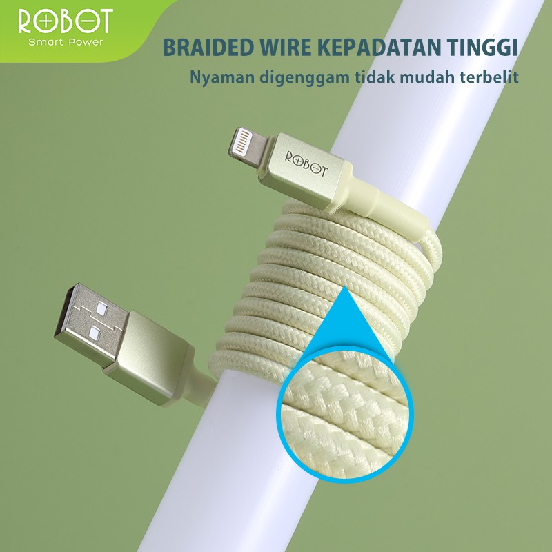 [Star] ROBOT Kabel Data RSM100/RSC100/RSL100 Kabel Data Charging Type C Micro USB Lighting 1M 2.4A Original - Garansi 1