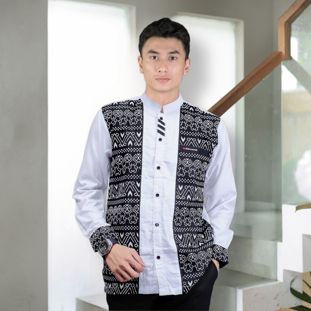 Baju Koko Pria Dewasa Lengan Panjang El Rumi Kombinasi Batik Motif Jarilist