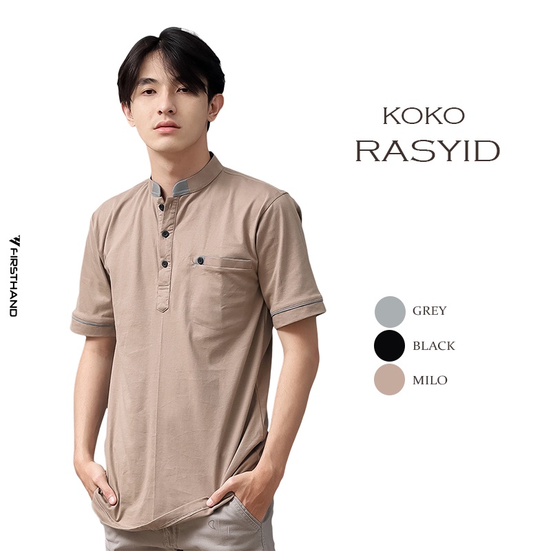 Baju Koko Pria Kaos Kurta Lengan Pendek Dewasa Rasyid Milo Abu Hitam