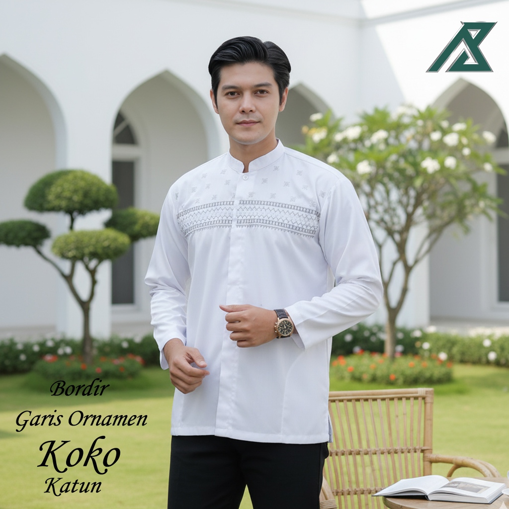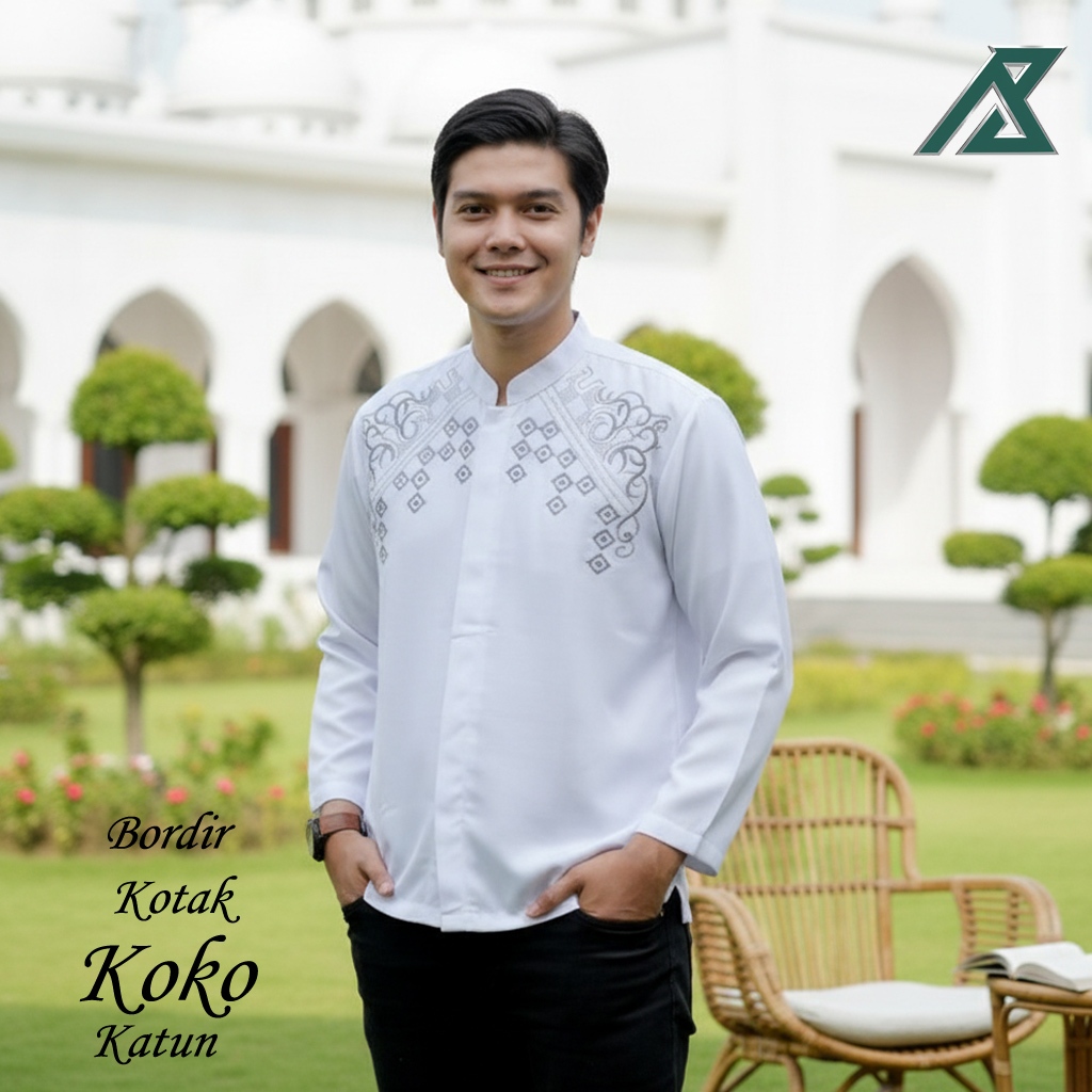 Baju Koko Pria Putih Bordir Katun Lengan Panjang Terbaru | M L XL XXL