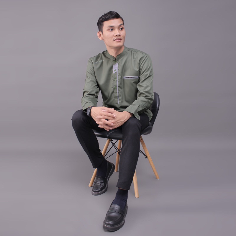 Kemeja Koko Pria Elrumi Lengan Panjang Motif Abizaar Warna Sage