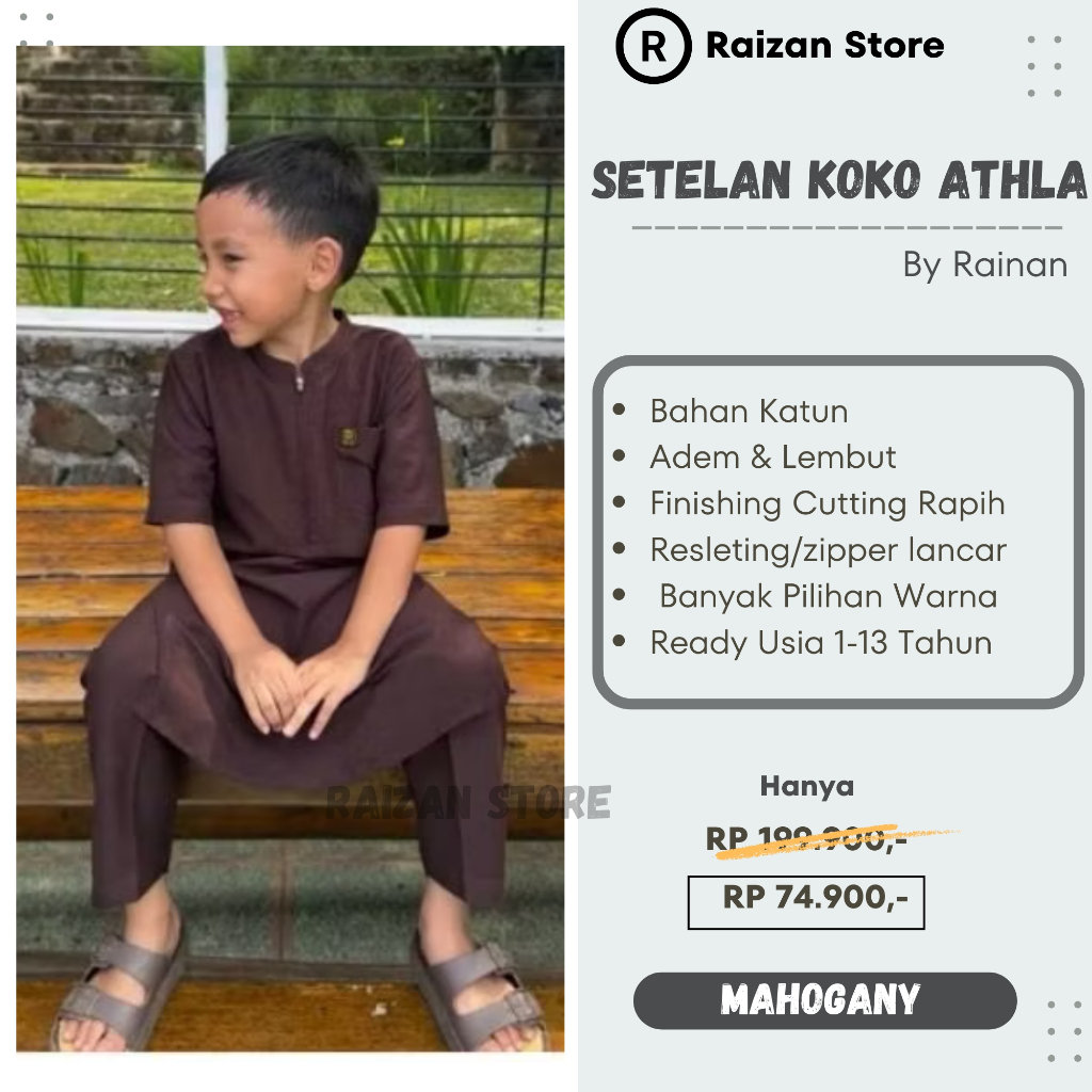Baju Koko Anak Laki -Laki Setelan Athla By Rainan Ori Bahan Adem Lembut Usia 1-13 Tahun