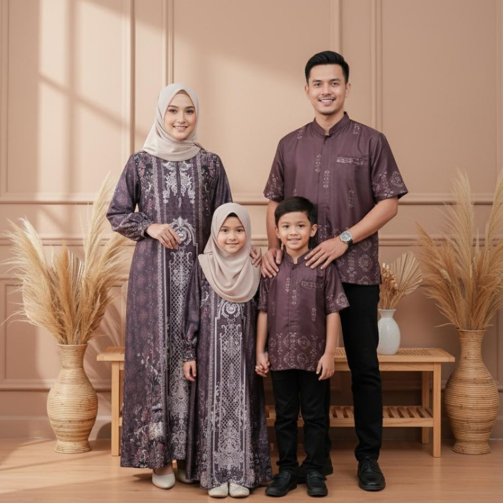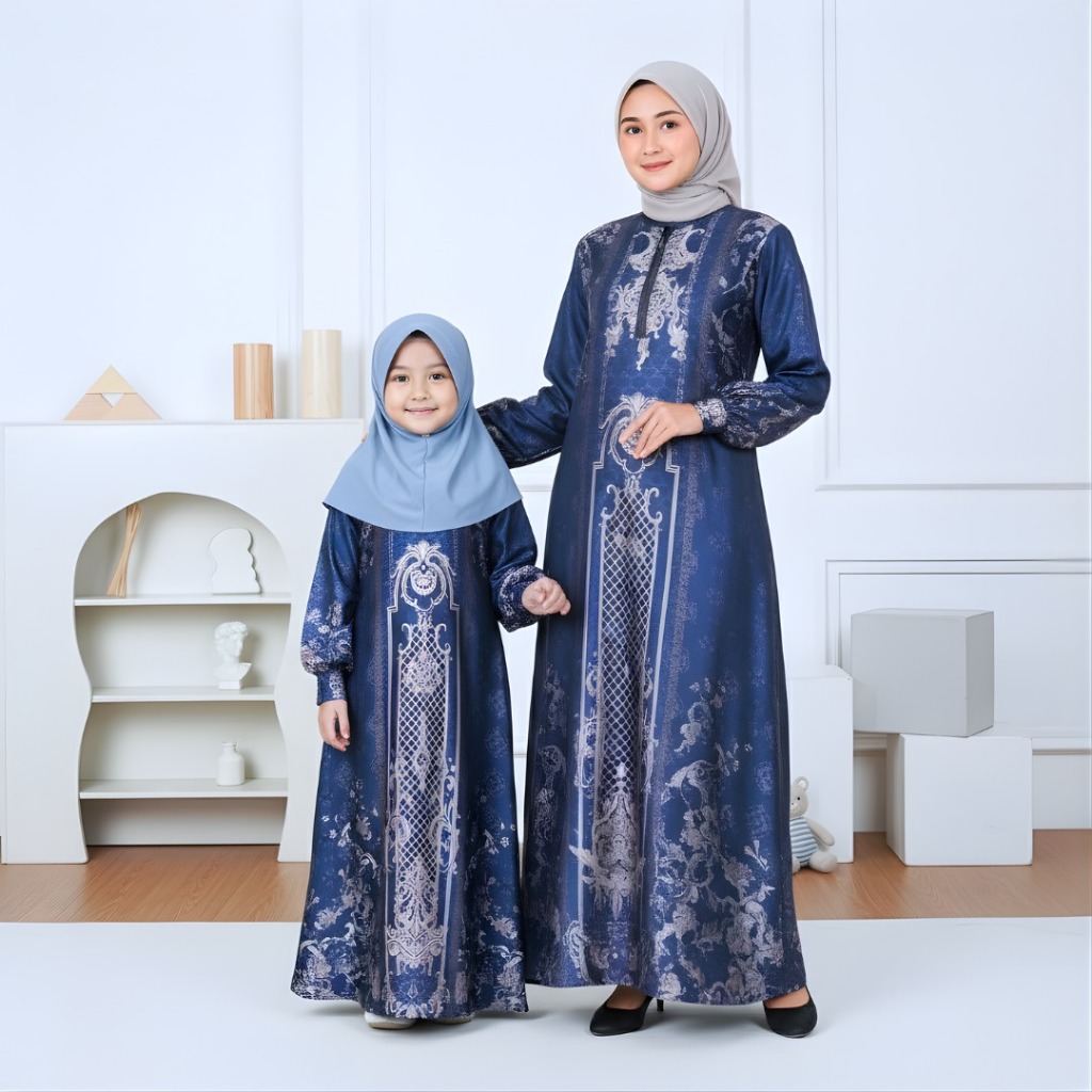 KEISHA_RHEVA Haliza Sarimbit Couple Keluarga Silk Motif / Fashion Gamis & Koko Muslim Terbaru Edisi Lebaran 2026