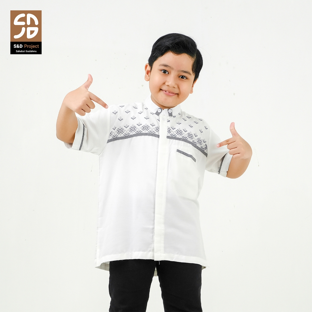 Koko Muslim Seri 20 Bordir Polikatun Putih Tulang 2-10 Tahun Anak Lengan Pendek