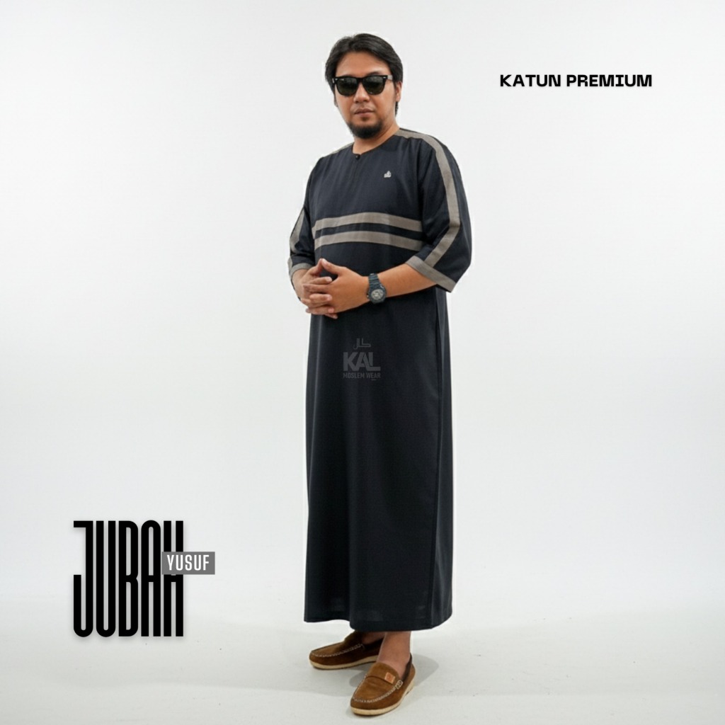 Jubah Pria Muslim YUSUF Model Kasual Tanpa Kerah Desain Elegan Lengan 3/4 Bahan Katun Premium