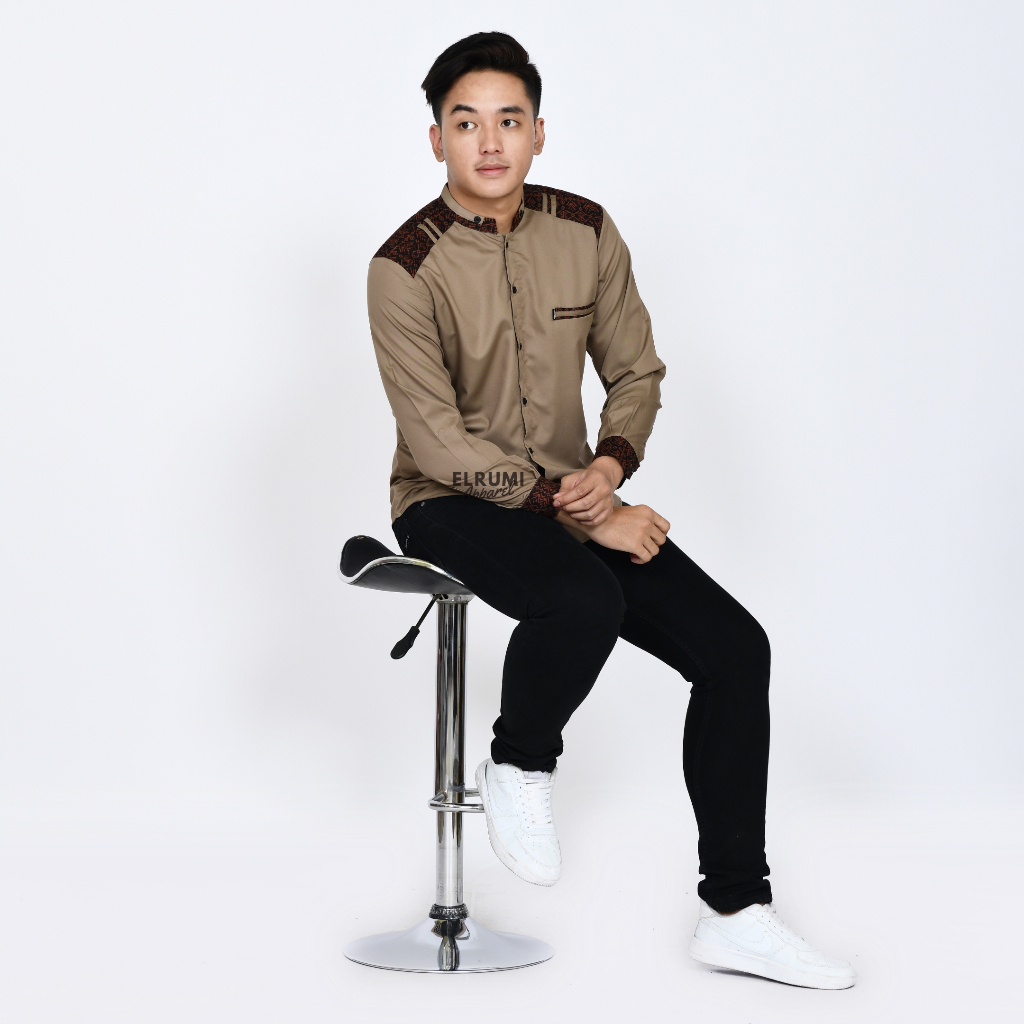 Baju Koko Pria Lengan Panjang Elrumi Kombinasi Batik Motif Adidis Katun Toyobo