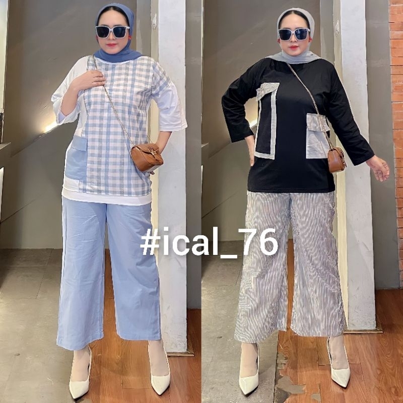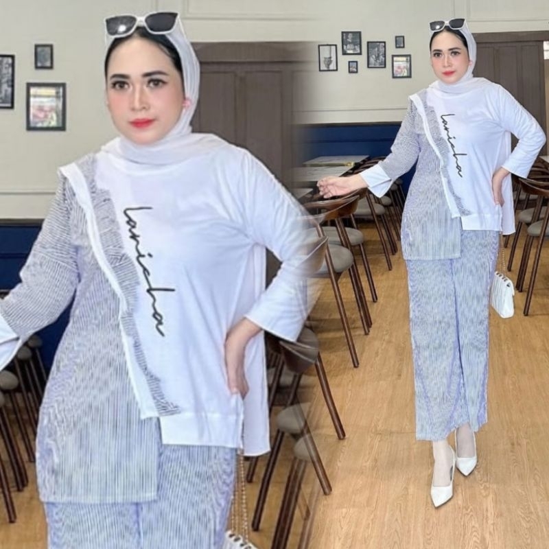 ONE SET LANCHA ORIGINAL / SETCEL KAOS KOMBINASI KATUN / SETELAN WANITA TERBARU / SET ATASAN DAN BAWAHAN WANITA