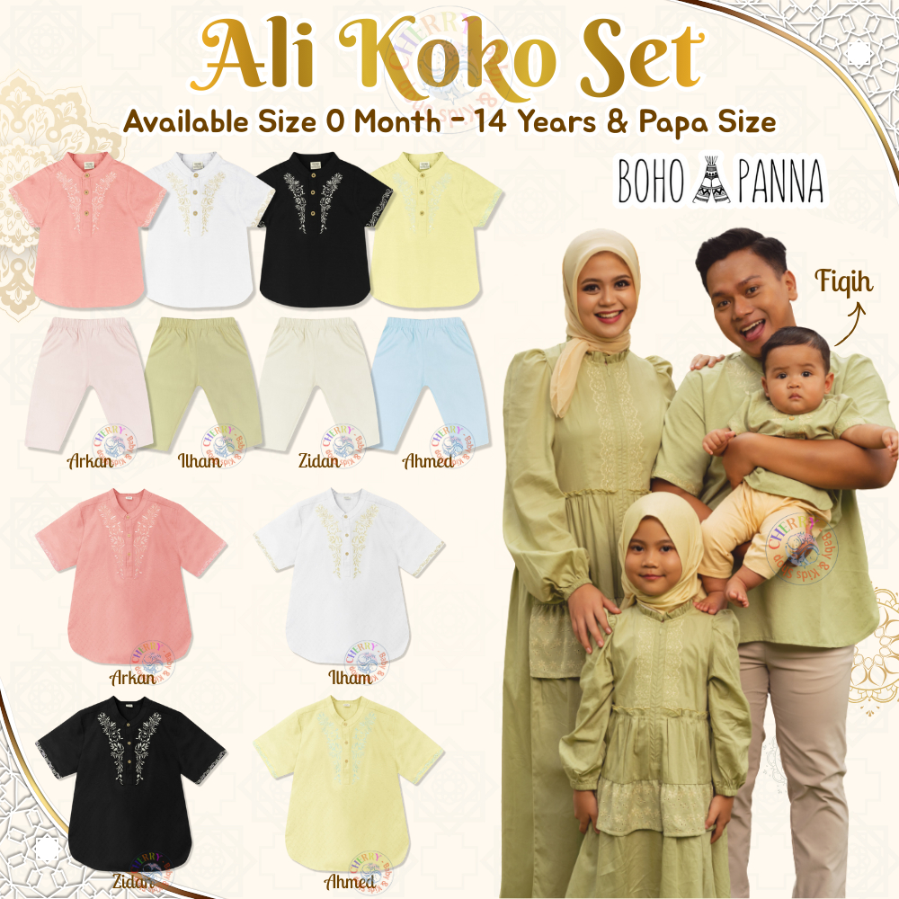 Bohopanna 0-14 Tahun & Papa Size Ali Koko Set / Setelan Koko Raya Lebaran Anak Laki Laki Pakaian Muslim CBKS
