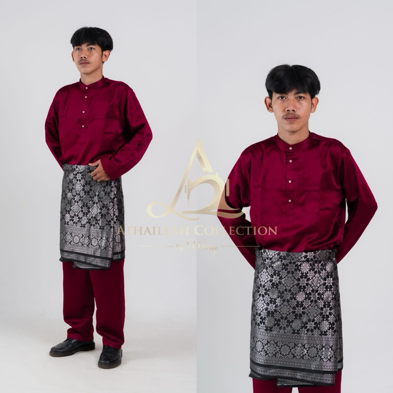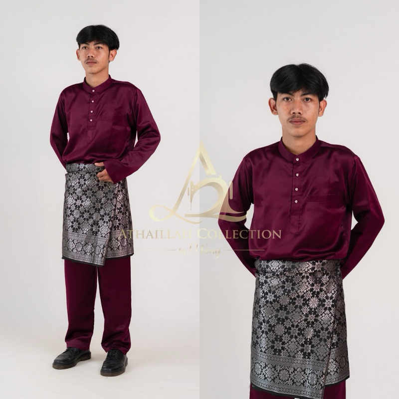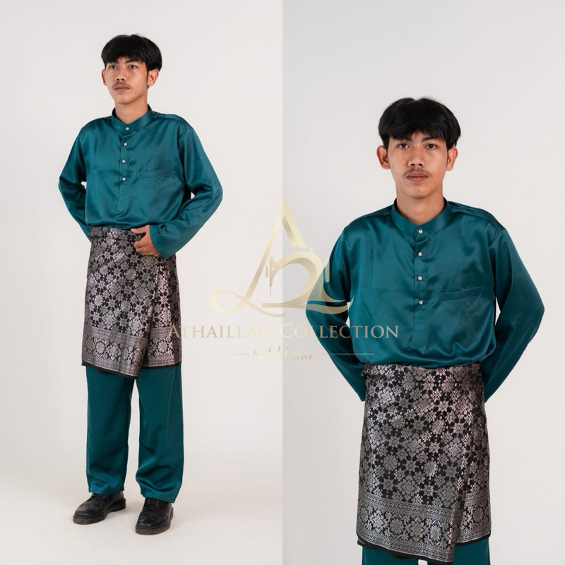 Set Baju Celana Teluk Belanga Setelan Kurung Melayu Pria Pakaian Adat Malaysia Baju Koko Muslim Satin Silk Premium
