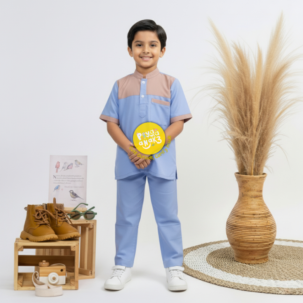 PAKET 3 SETELAN KOKO CAMPUR KURTA ANAK BATIK DADA KANCING LIS GARIS 1-10 TAHUN 60RIBU DAPAT 3 SET