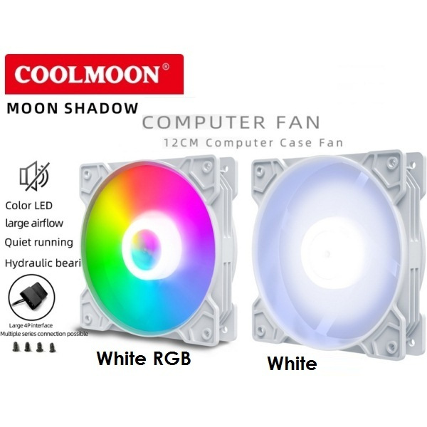 FAN Casing PC Komputer Coolmoon Full White & White RGB LED 12cm
