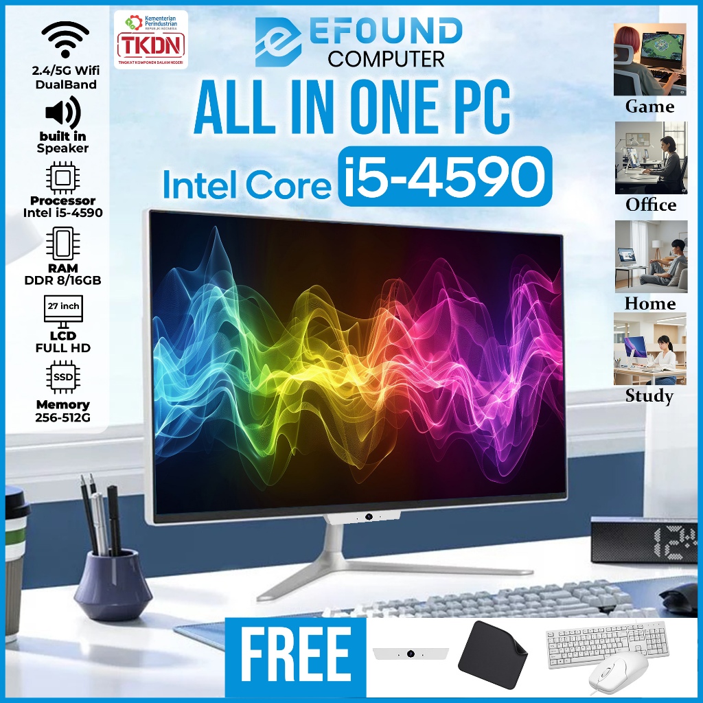 eFound PC All-in-One Intel Core i5-4590 – Super Tipis, Full HD 19-27 inch Z2, 8GB RAM, 256GB SSD untuk Rumah, Kantor & Sekolah
