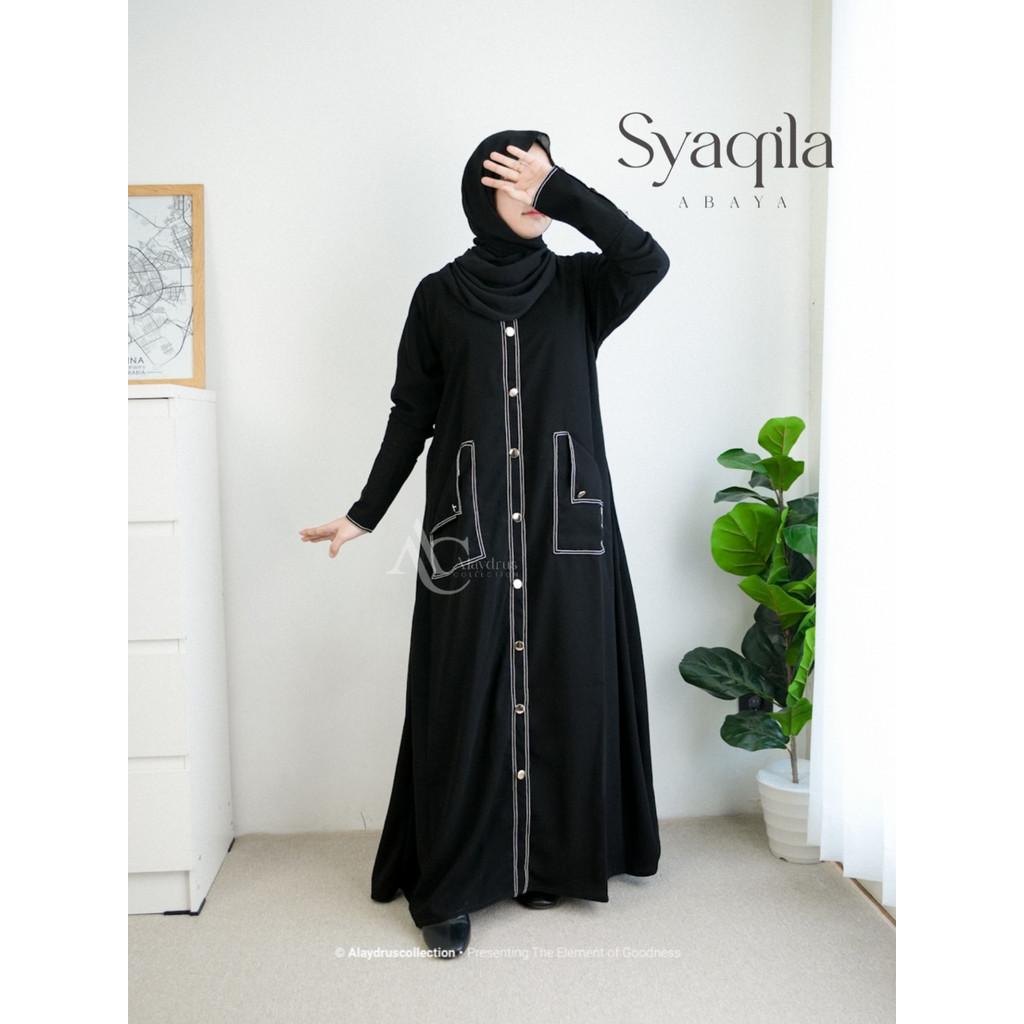 Alaydrus Collection Syaqila Abaya Hitam Turkey Gamis Syari Muslimah Bahan Jetblack Hitam Dress Saku