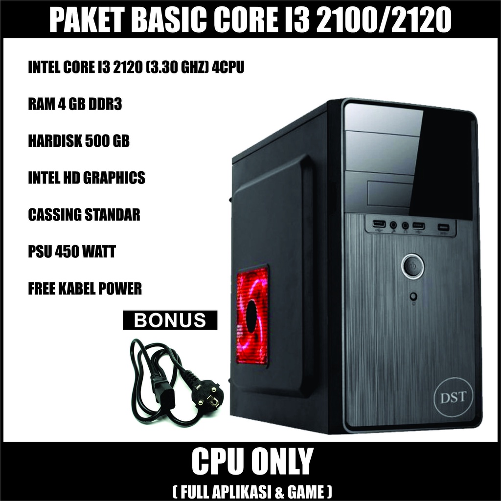 Pc / Komputer Intel Core i3 2120 Ram 4 Gb ssd 128 Gb Layar 19 Inch
