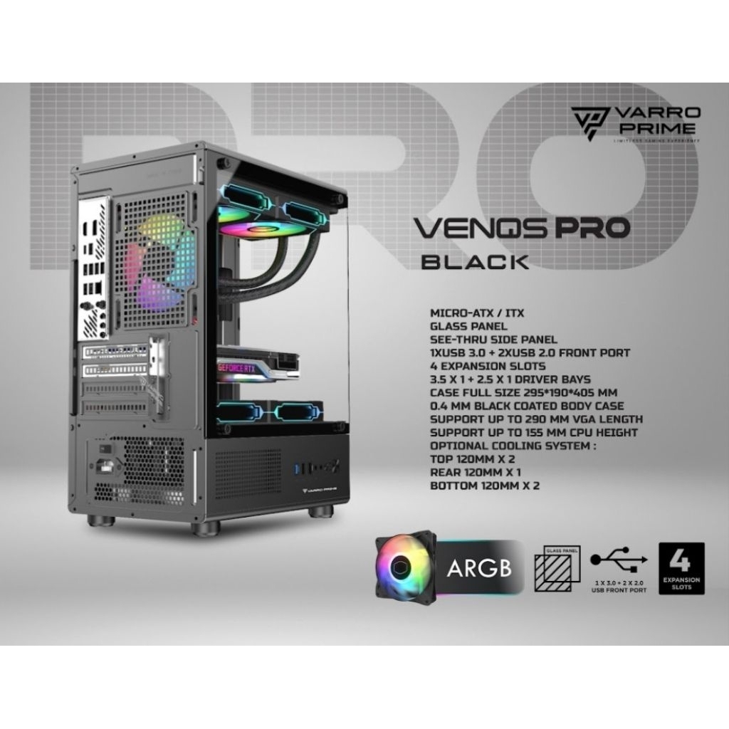 Casing Varro VENQS Pro Black Include 3 Fan ARGB