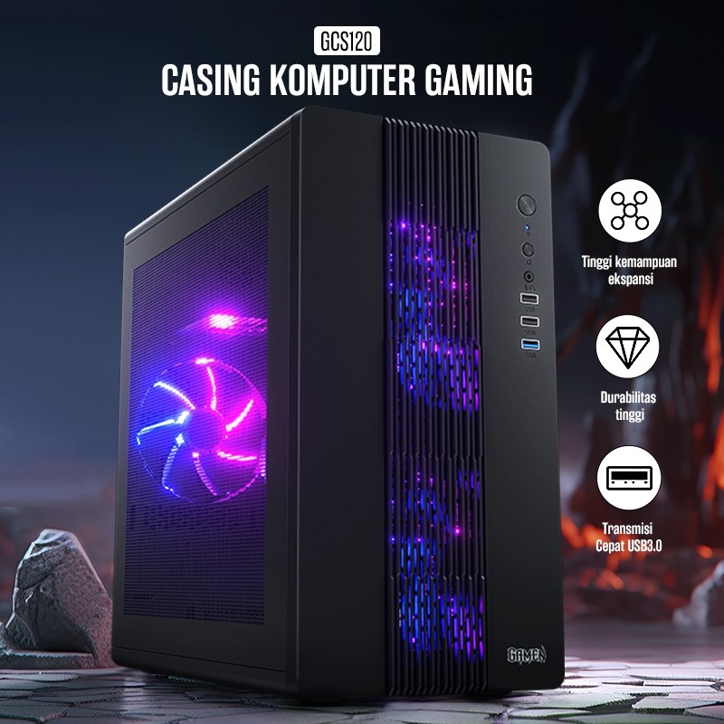 GAMEN Casing PC Gaming GCS120 Transparant Tempered Glass PC Case Casing CPU Komputer Rakitan Gamers Casing PC Murah