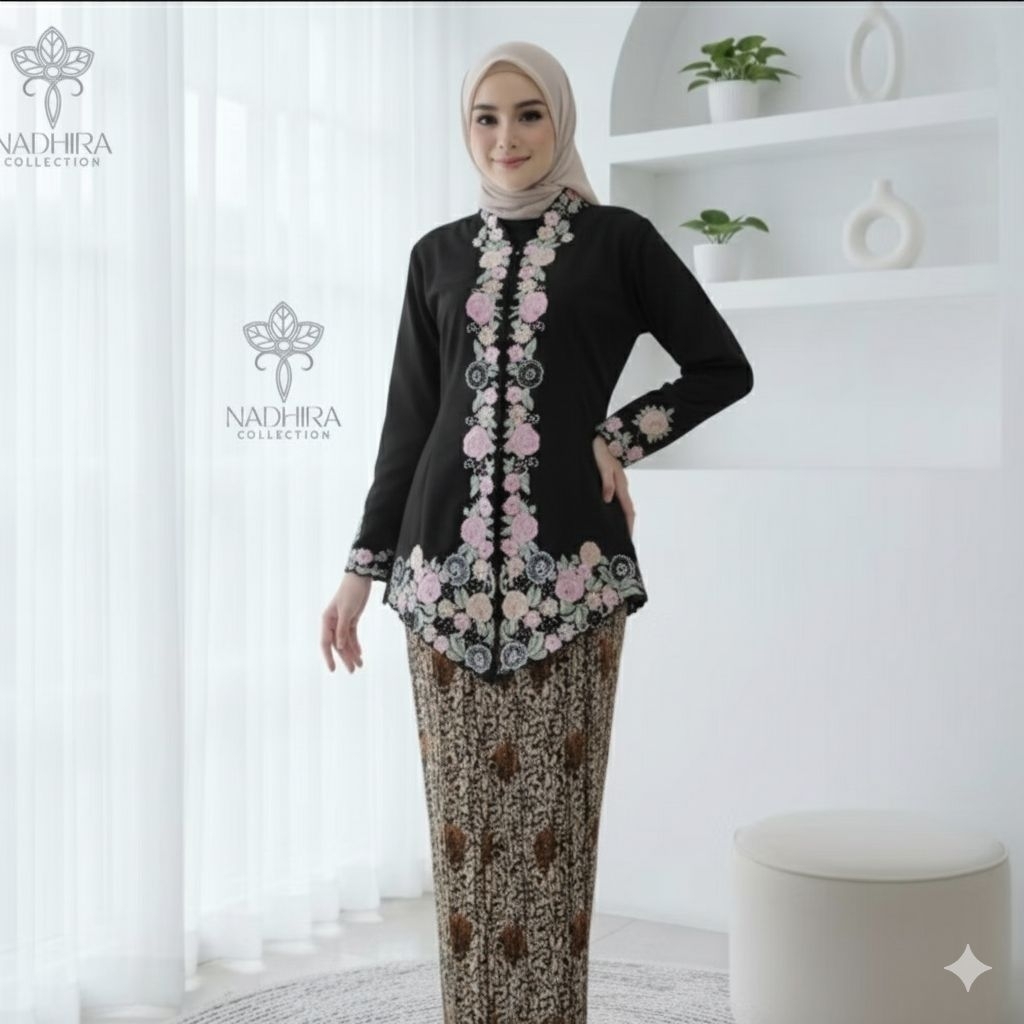 NADHIRA Kebaya Encim Bolero Bordir Modern Bunga Mawar Jumbo Big Size LD120 Lengan Panjang Premium