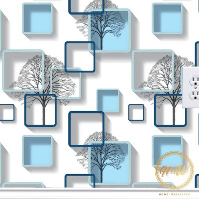 Wallpaper Dinding Murah - Motif Kotak 3D Biru - Wallpaper Stiker Dinding 8M