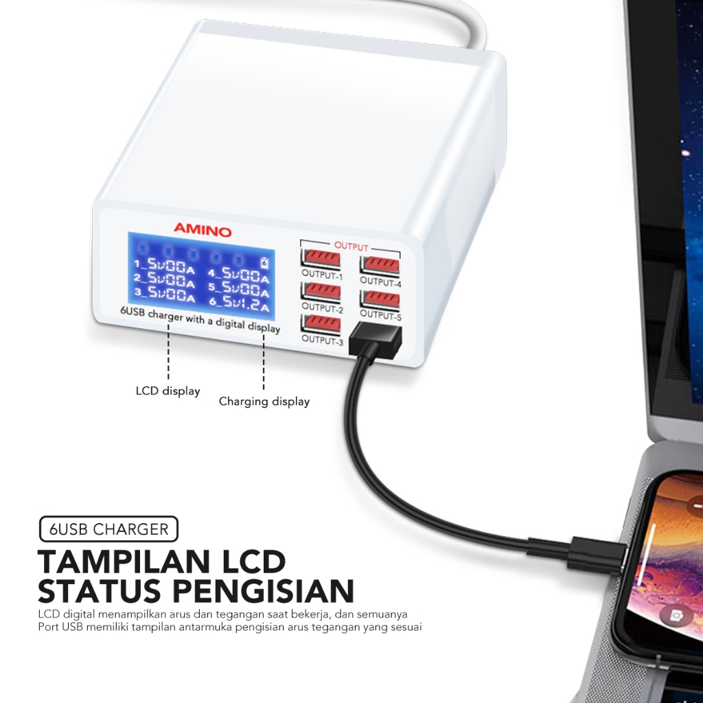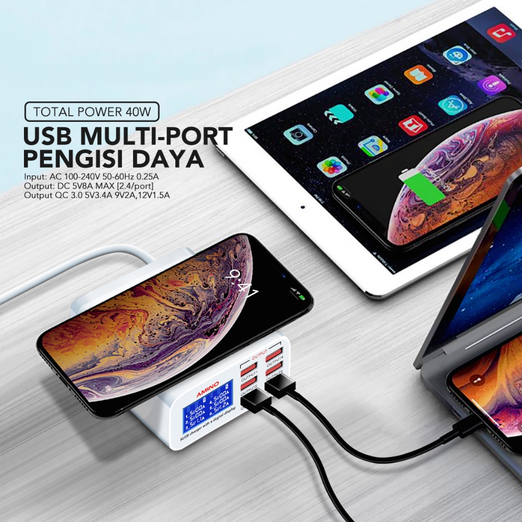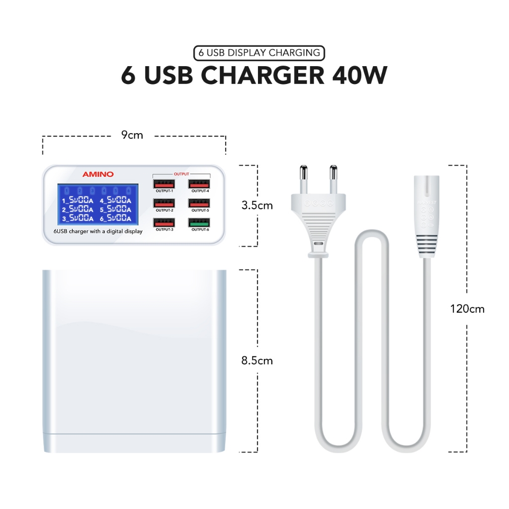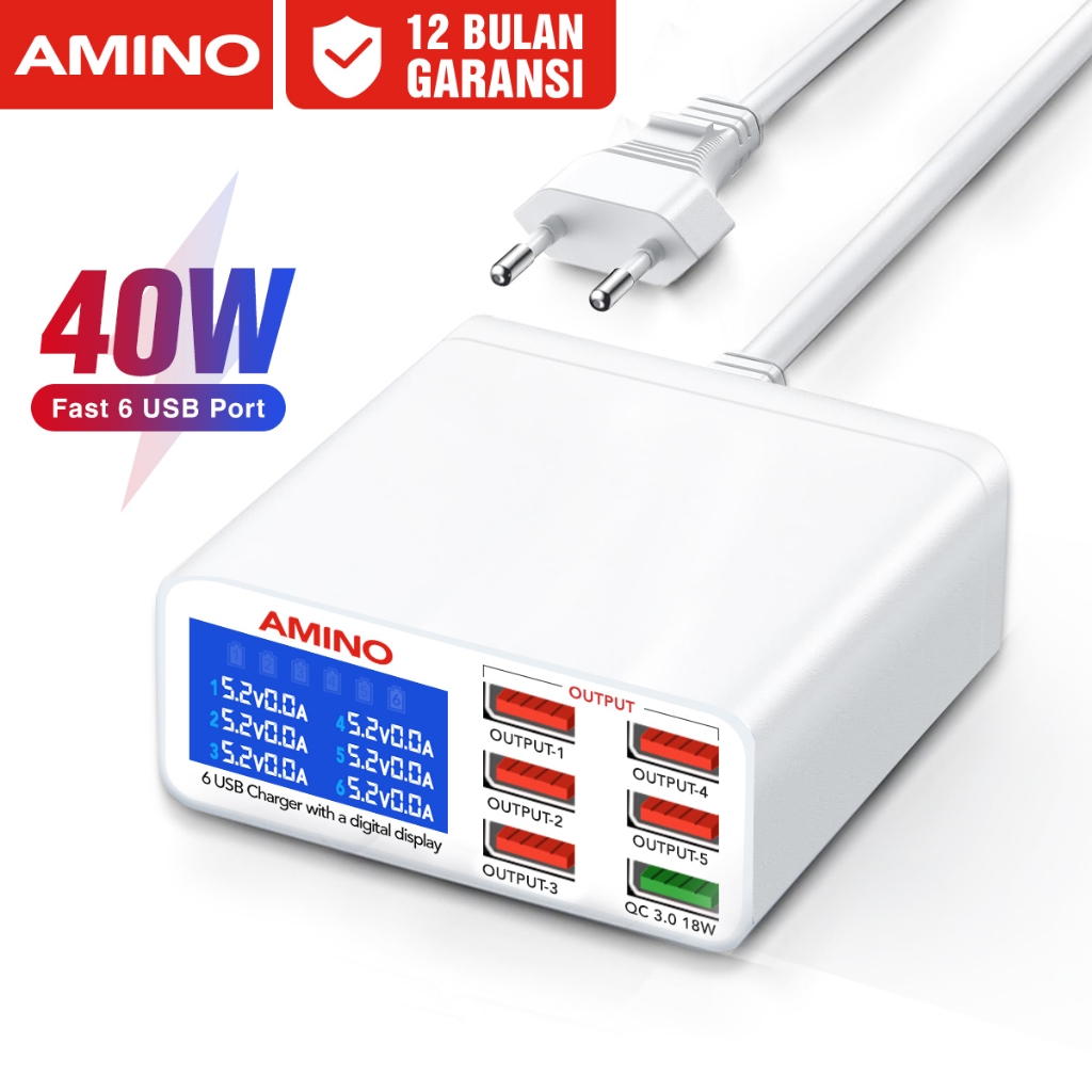 [Star] AMINO 40W 6 USB Port Multi Port Charger QC 3.0 Fast Charger LED Function Adaptor Power Kabel
