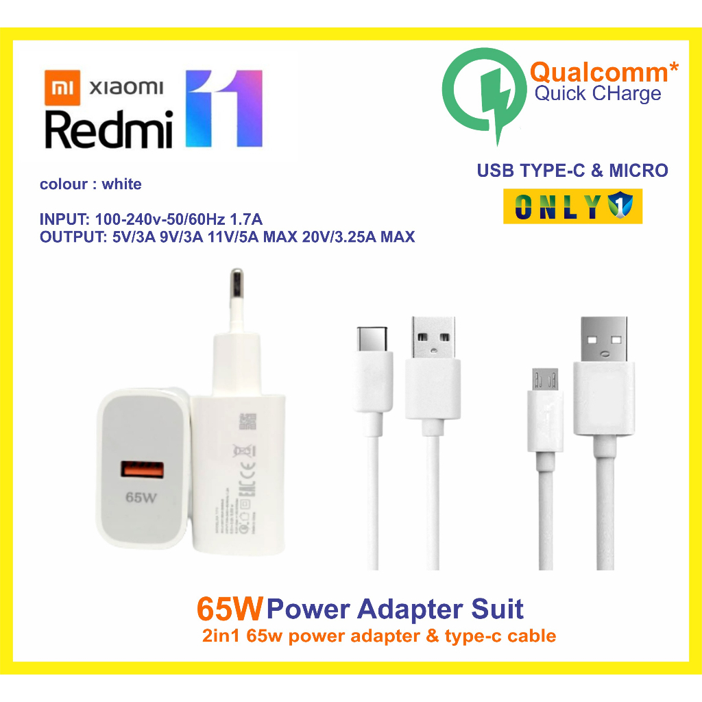 [Star] Charger Xiaomi Redmi 11 Fast Charging Type C dan Micro USB Casan Xiaomi 65w