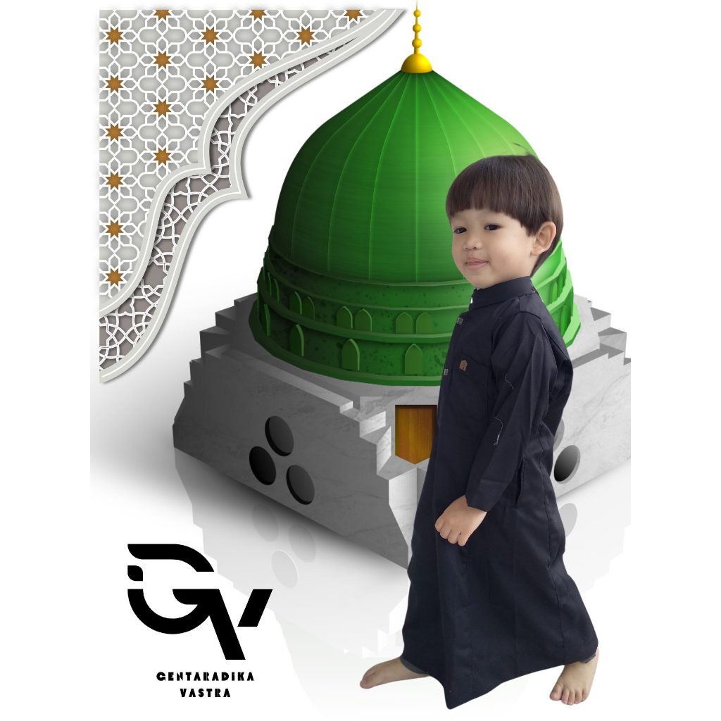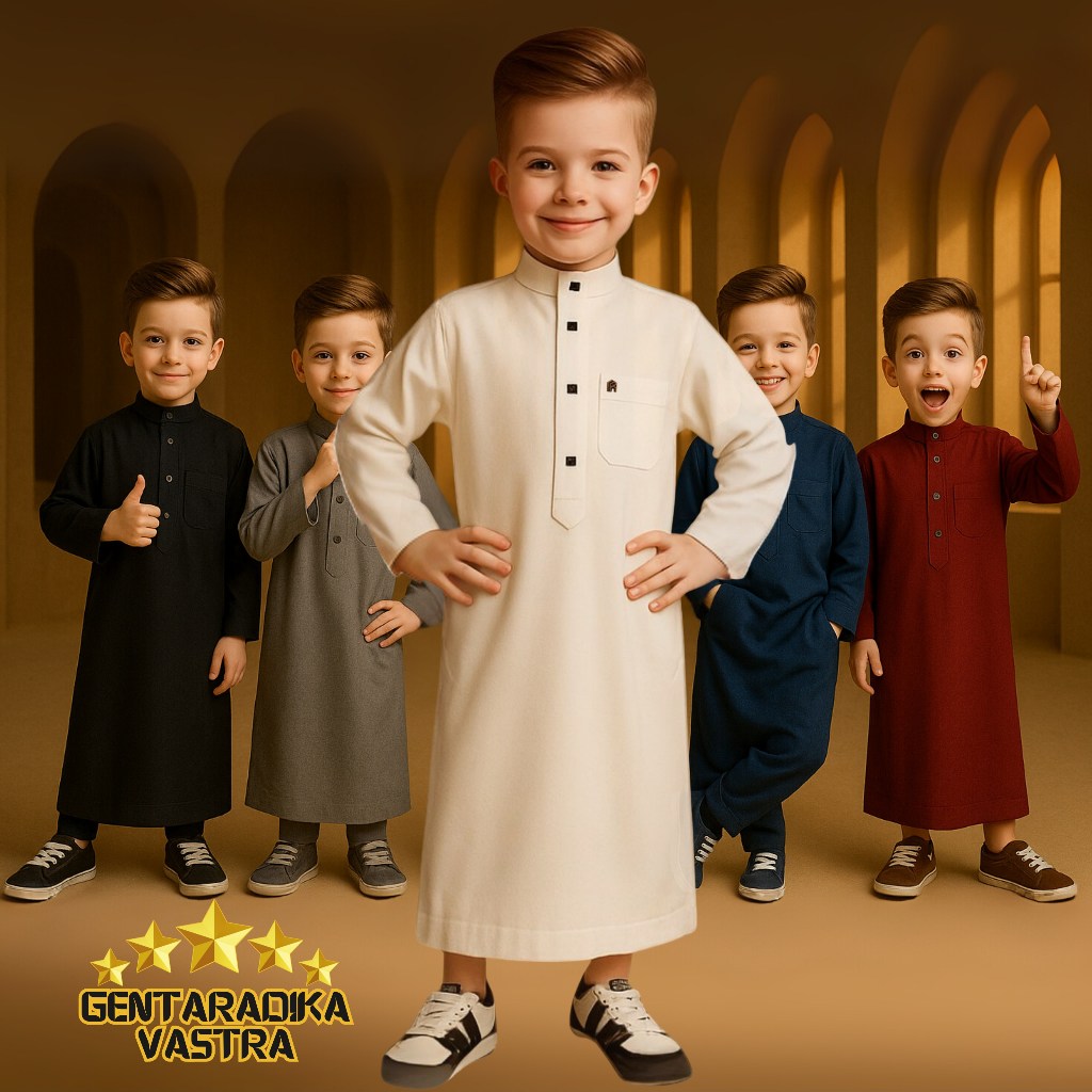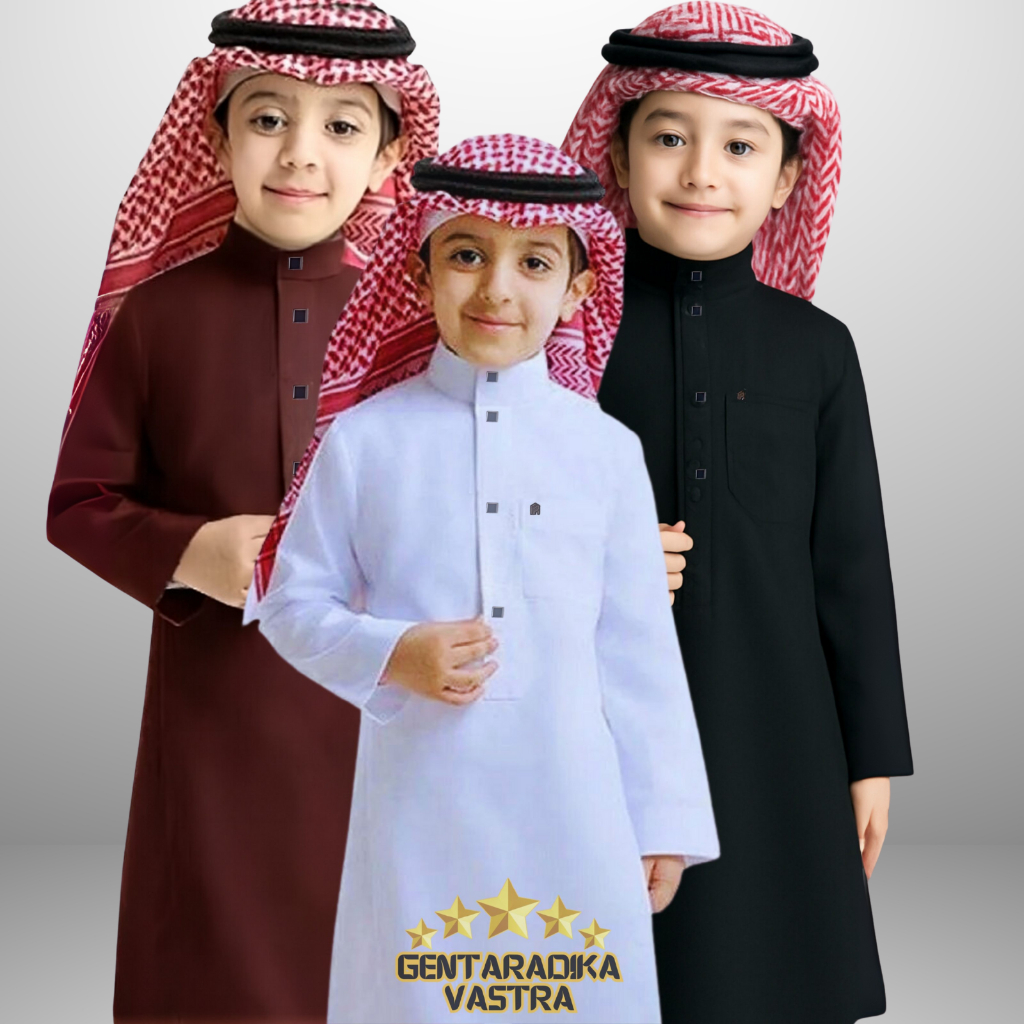 Jubah Gamis Anak Laki-Laki Usia 1-14 Tahun Model Saudi Arabia Katun Kerah Tegak