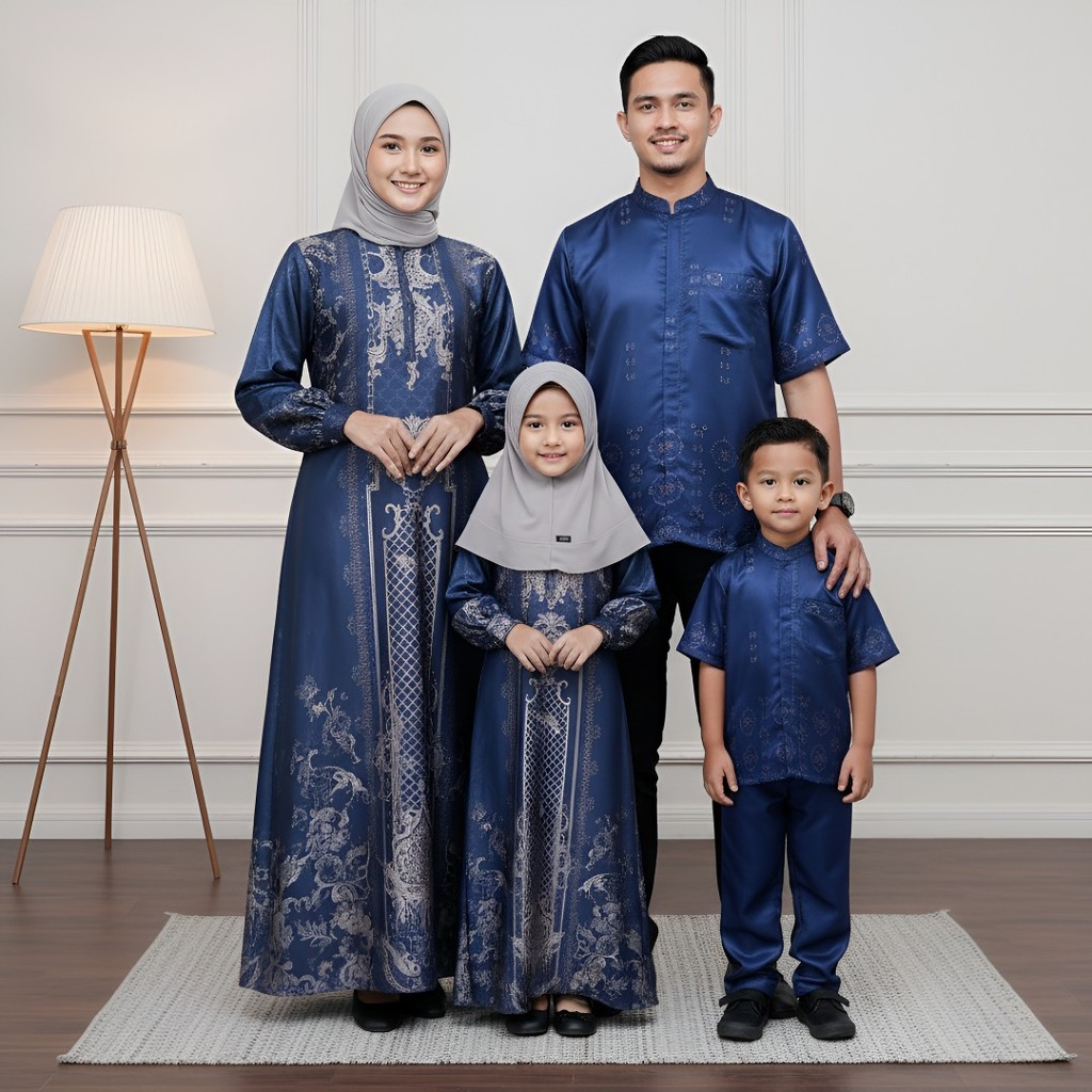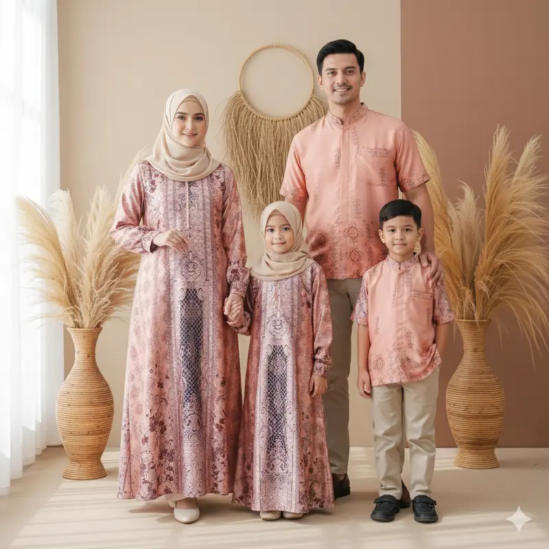 Sarimbit Salmaiva Silk Motif Batik Set Lebaran 2026 Couple Keluarga Gamis Muslim & Koko Kemeja Pria
