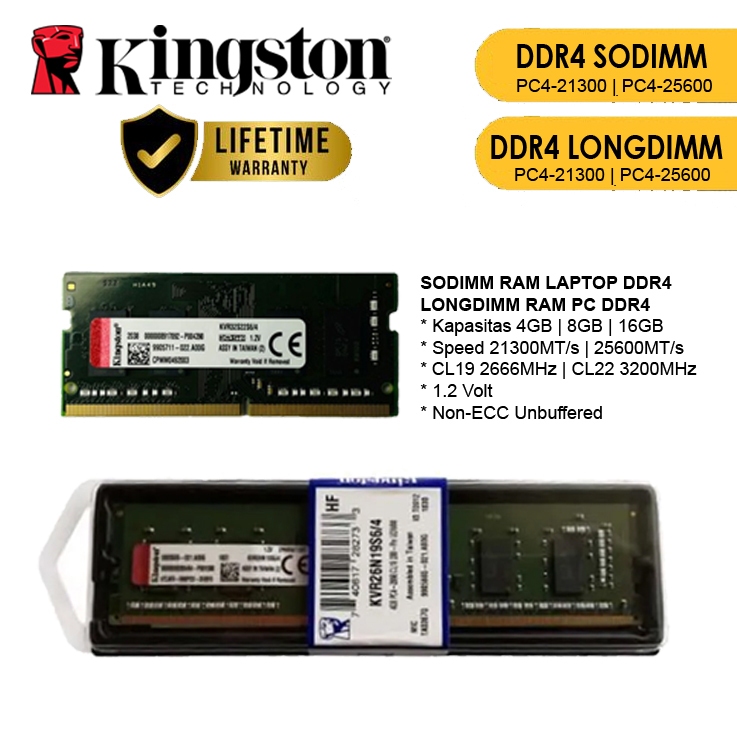 Kingston DDR4 PC25600 3200Mhz RAM PC Longdimm | RAM Laptop Sodimm