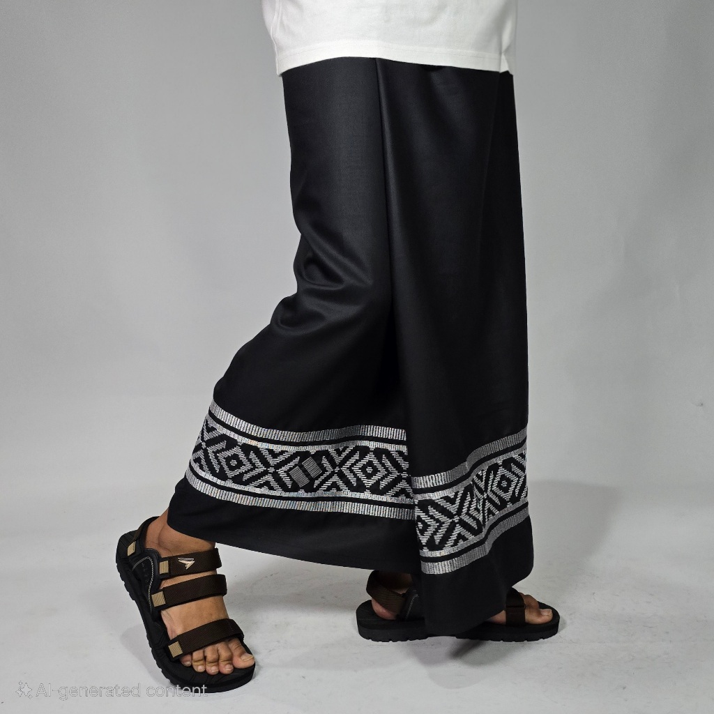 Wadimor - Sarung Bordir Motif Mozaik Timbul Katun Hitam Pintu Aceh Keren Elegan Pria Dewasa Terbaru