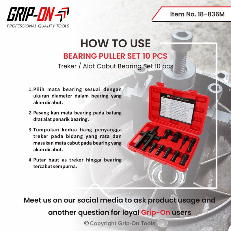 Grip-On Bearing Puller Set 10Pcs Treker Cabut Bearing 10 Pcs 18-836