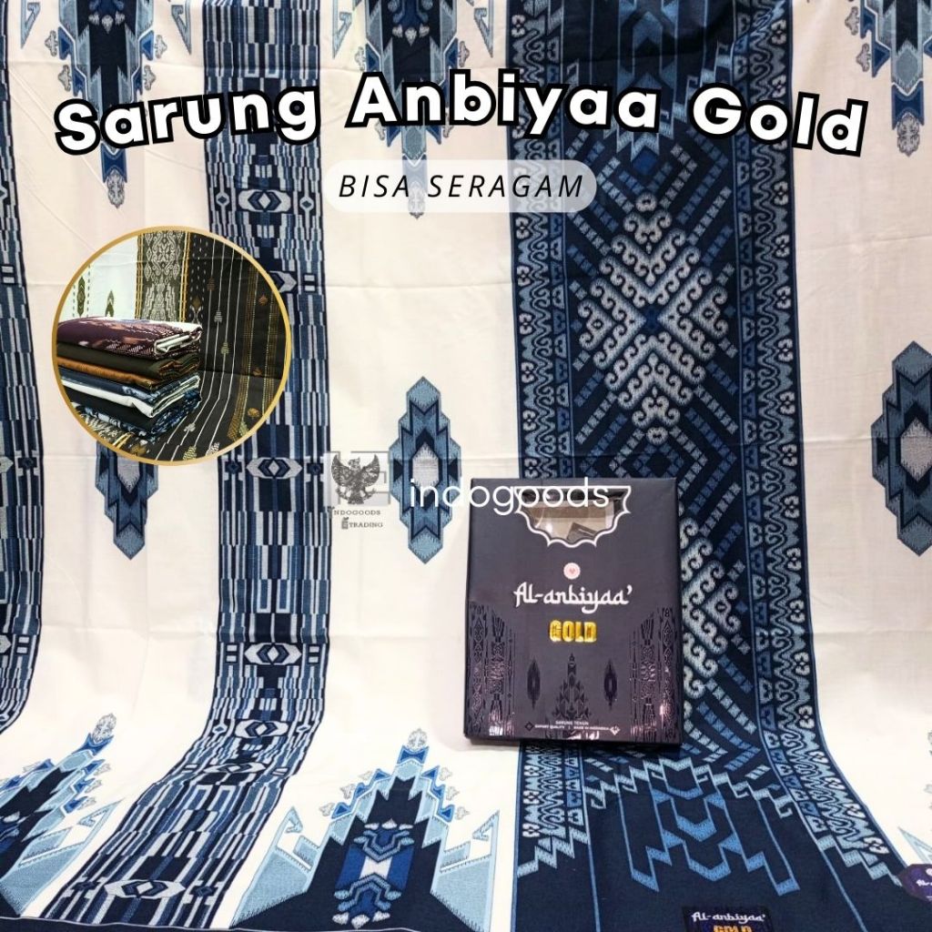 Sarung Pria Dewasa Al Anbiyaa Gold Motif BHS Premium Dasar Putih Seragam [GROSIR/ECER MURAH]