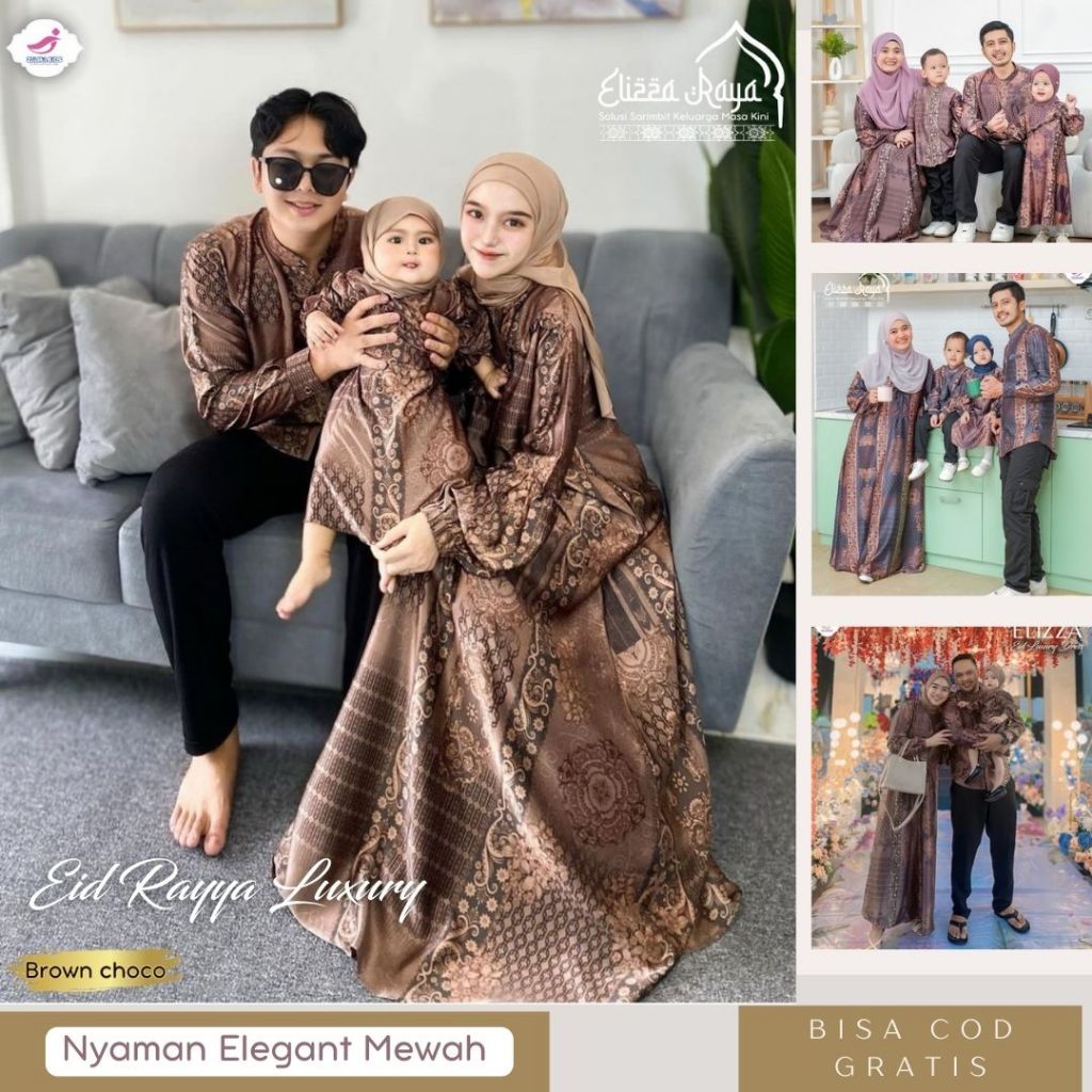 Baju couple keluarga ayah ibu anak Sarimbit keluarga 2026 lebaran premium motif etnic / Gamis kondangan simple elegan |Zalira Kids - Eliza