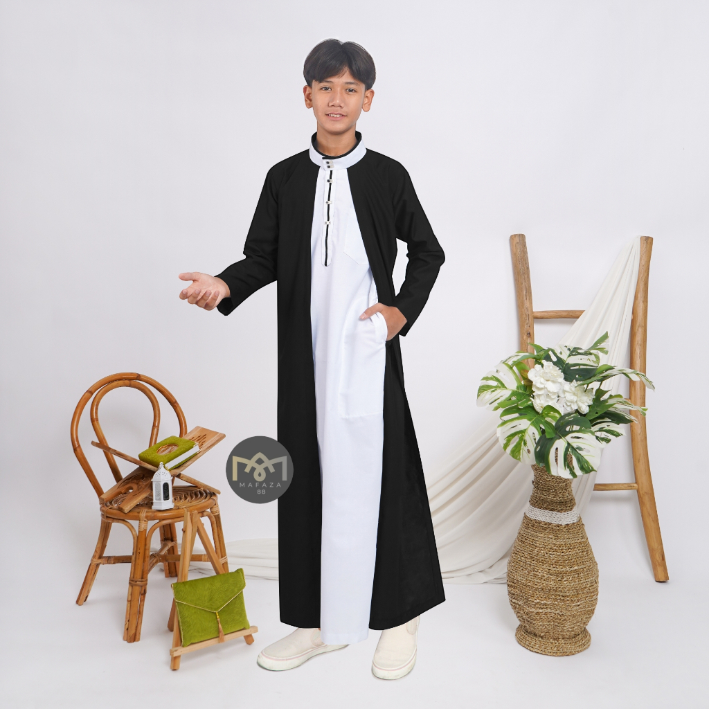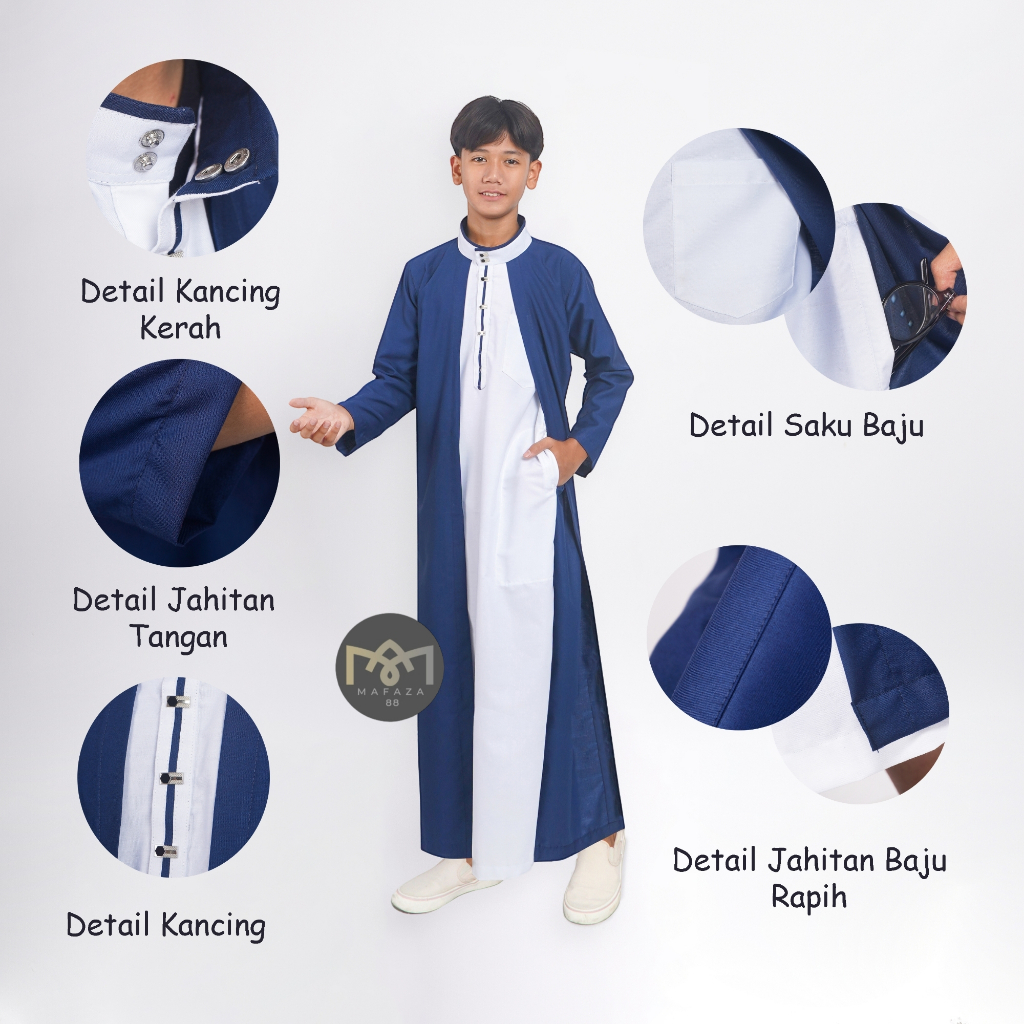 Jubah Gamis Anak Laki 2 Layer 2 in 1 TOYOBO PREMIUM ADEM Usia 8 9 10 11 12 13 14 15 16 Tahun Kancing Snap Impot Model Motif Haromain Lengan Panjang Garis List Sholat Umroh Lebaran