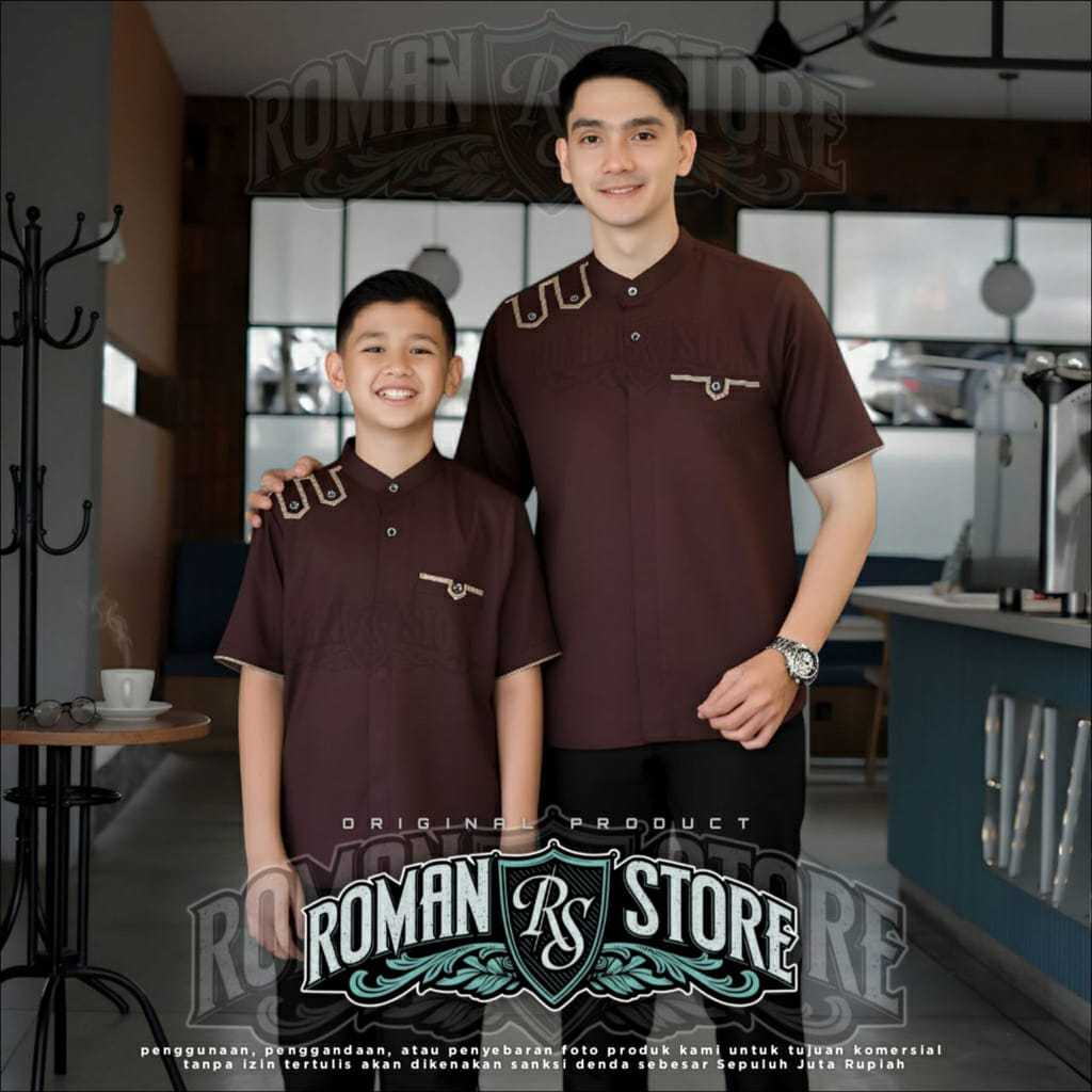 Baju Koko Couple Ayah Anak Laki Laki Bahan Toyobo Import Terbaru 2026 WARNA EMERALD / MAHOGANY