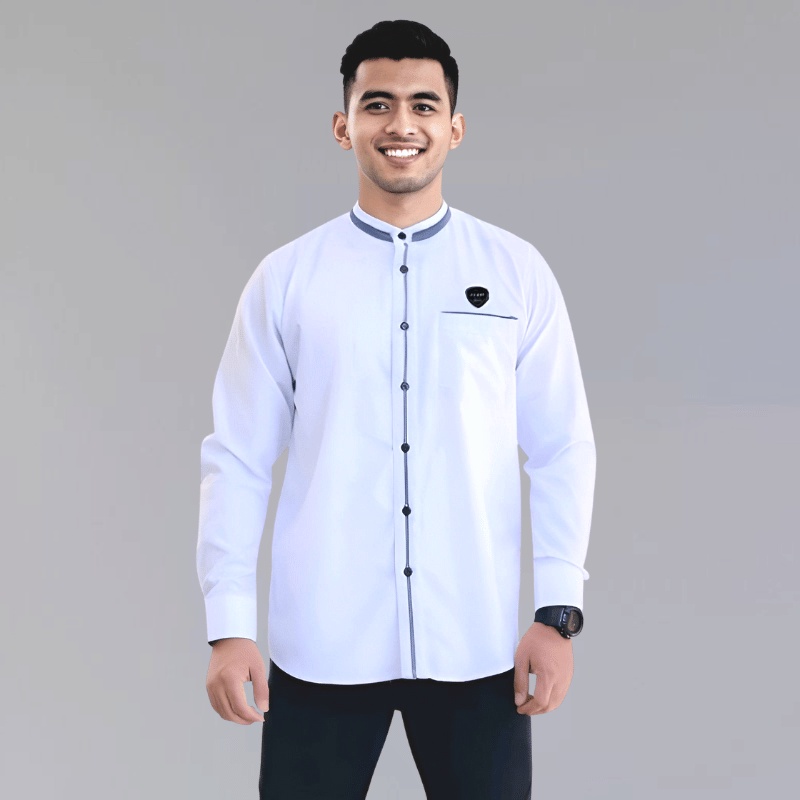 Baju Koko Putih Lengan Panjang Kemko Hadroh Kemeja Koko Dewasa Kurta Taqwa Baju Muslim Pria Kekinian