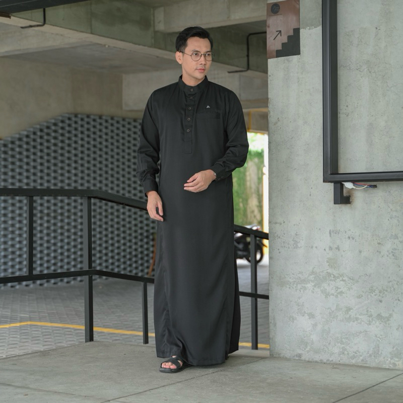 Jubah Pria Dewasa Premium AHSAN - Lengan Manset Black & White Edition