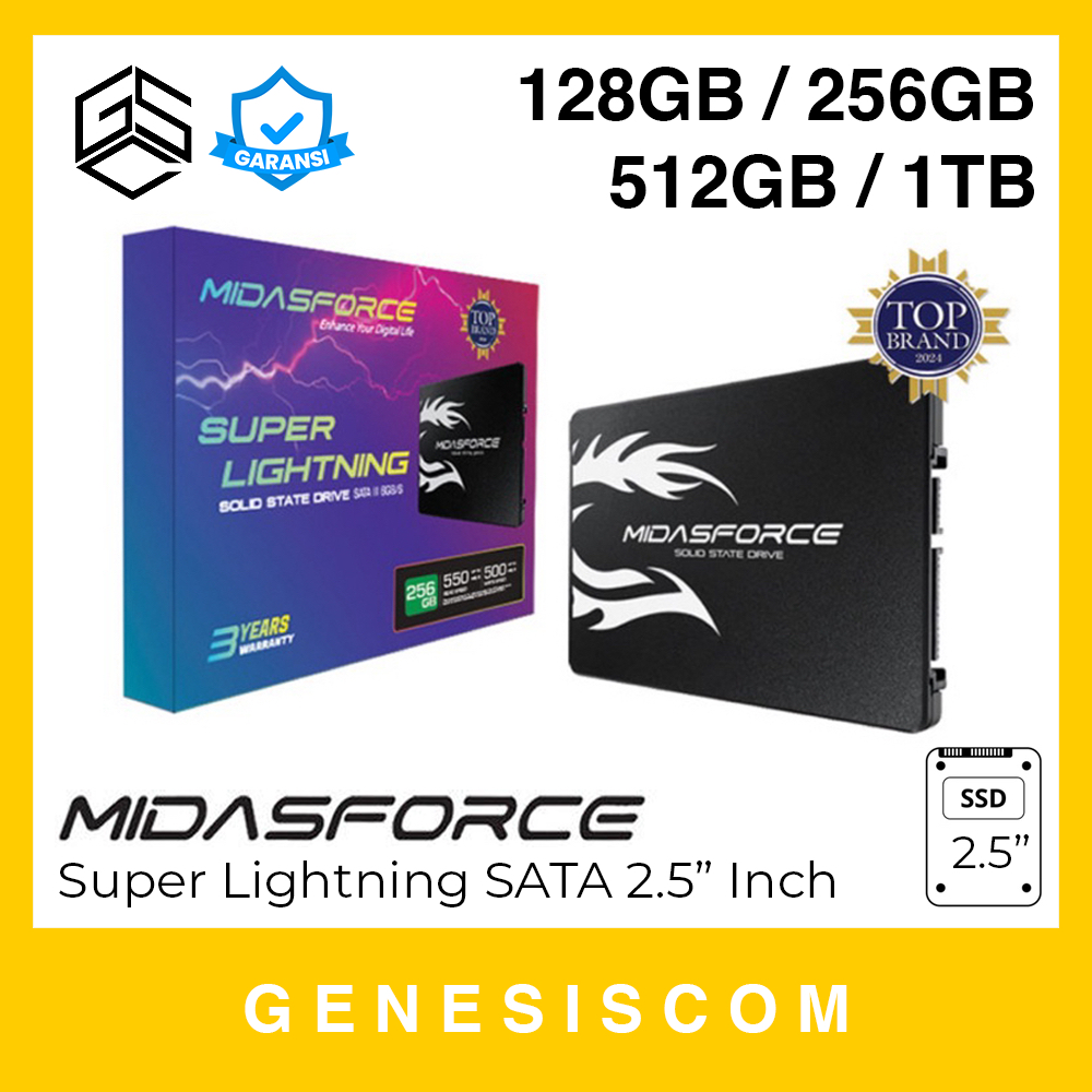 SSD MIDASFORCE 128GB / 256GB / 512GB / 1TB - SATA 2.5" Inch Super Lightning 3D Nand SATA3 III 2,5" Inci Solid State Drive Disk Storage Internal Midas Force ORIGINAL
